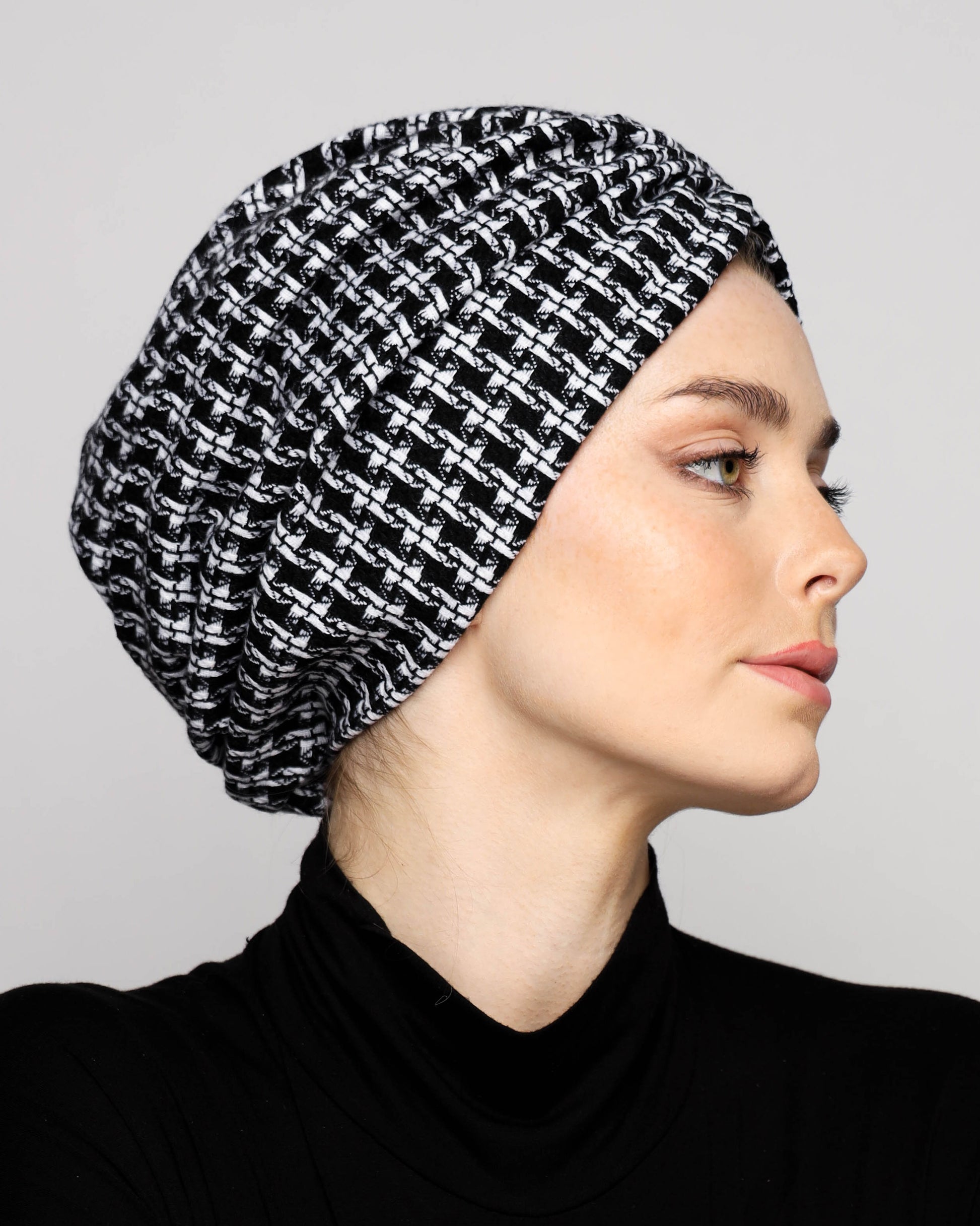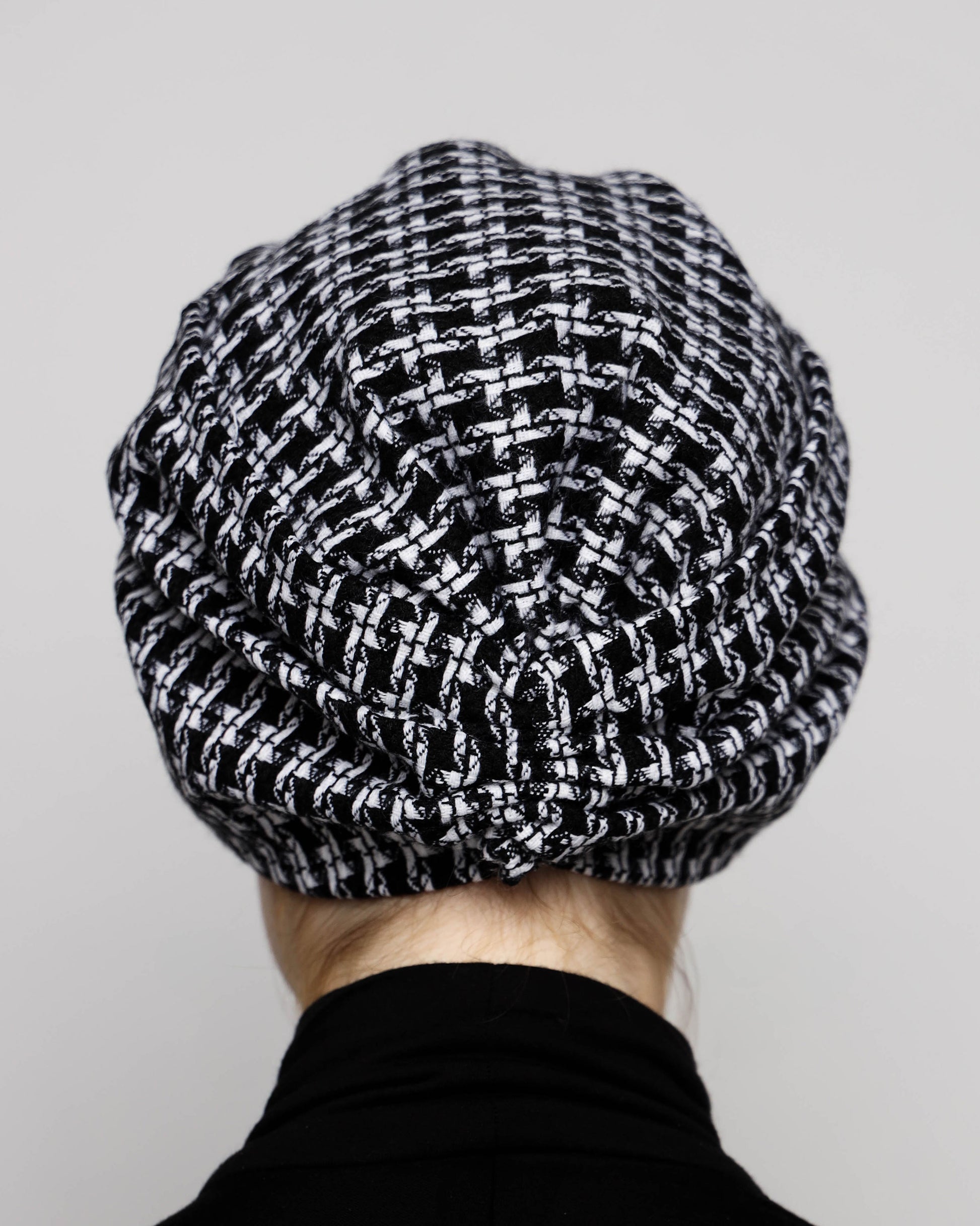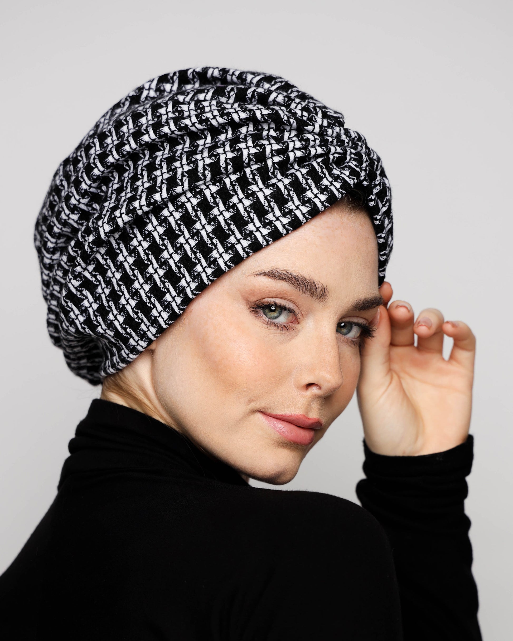 Elevate your winter look with our B&W Gathering Wool Turban. Made with a soft wool blend and lined with pure cotton, this turban provides both comfort and warmth. Perfect for any outdoor gathering, this luxurious accessory adds a touch of sophistication to any outfit.