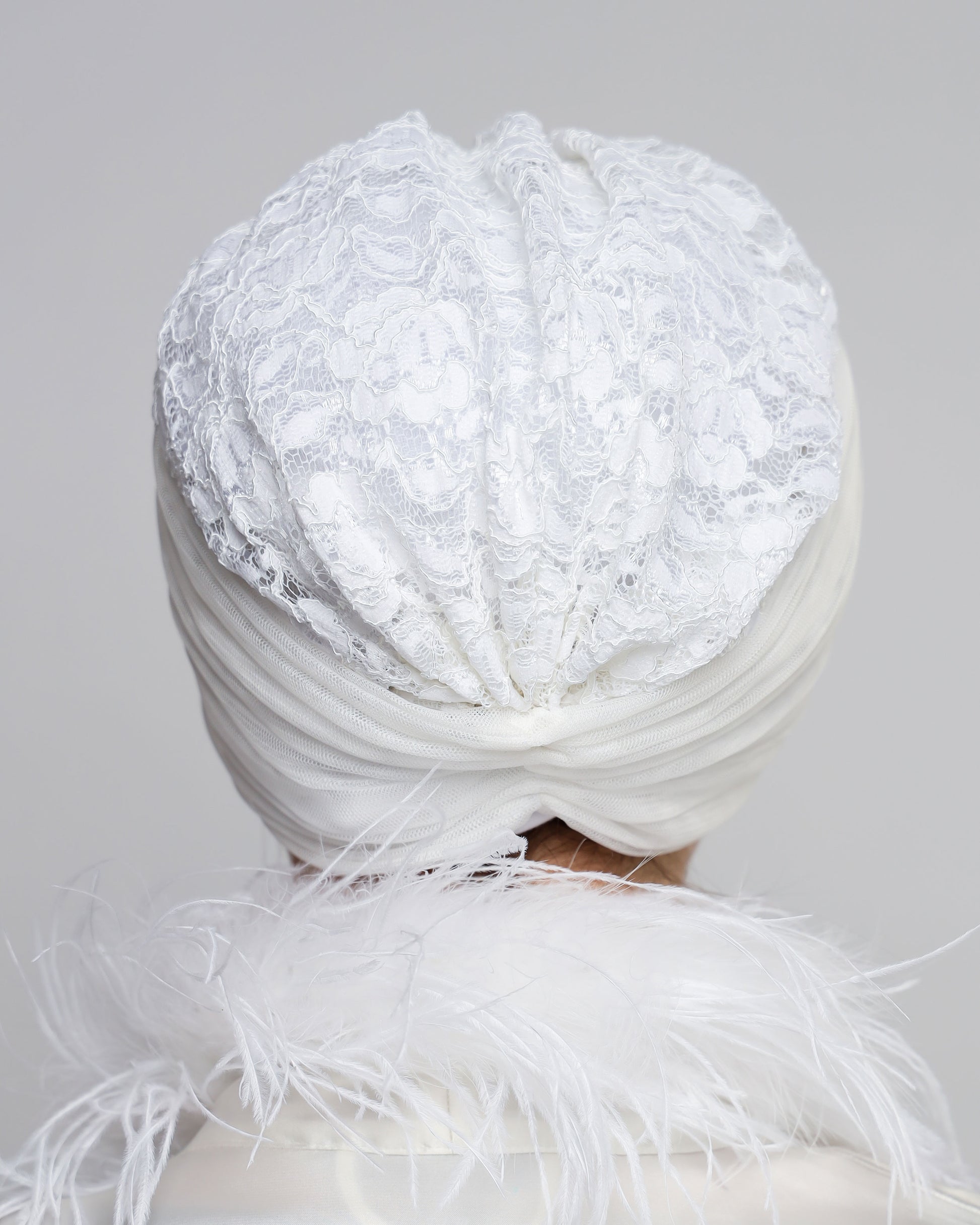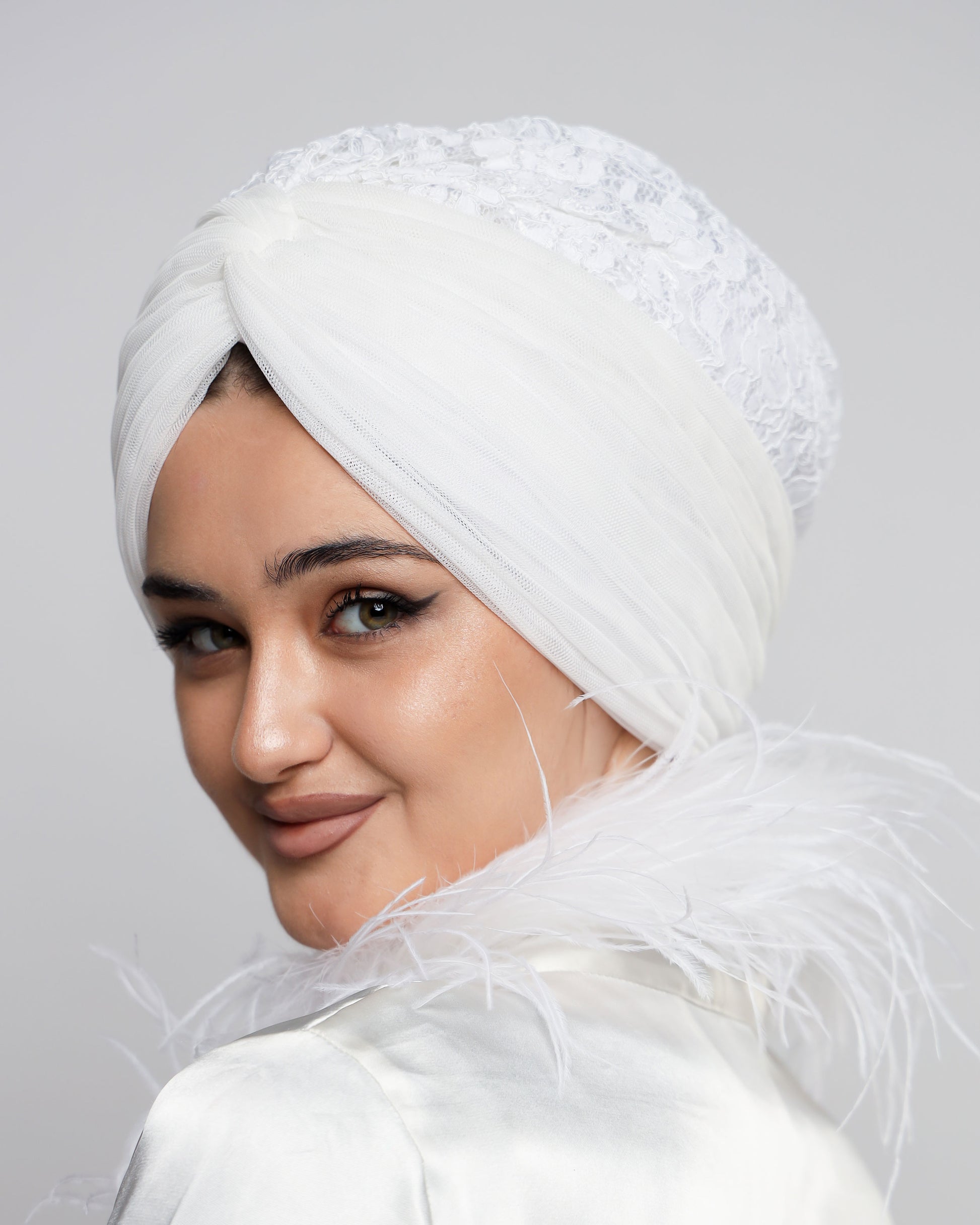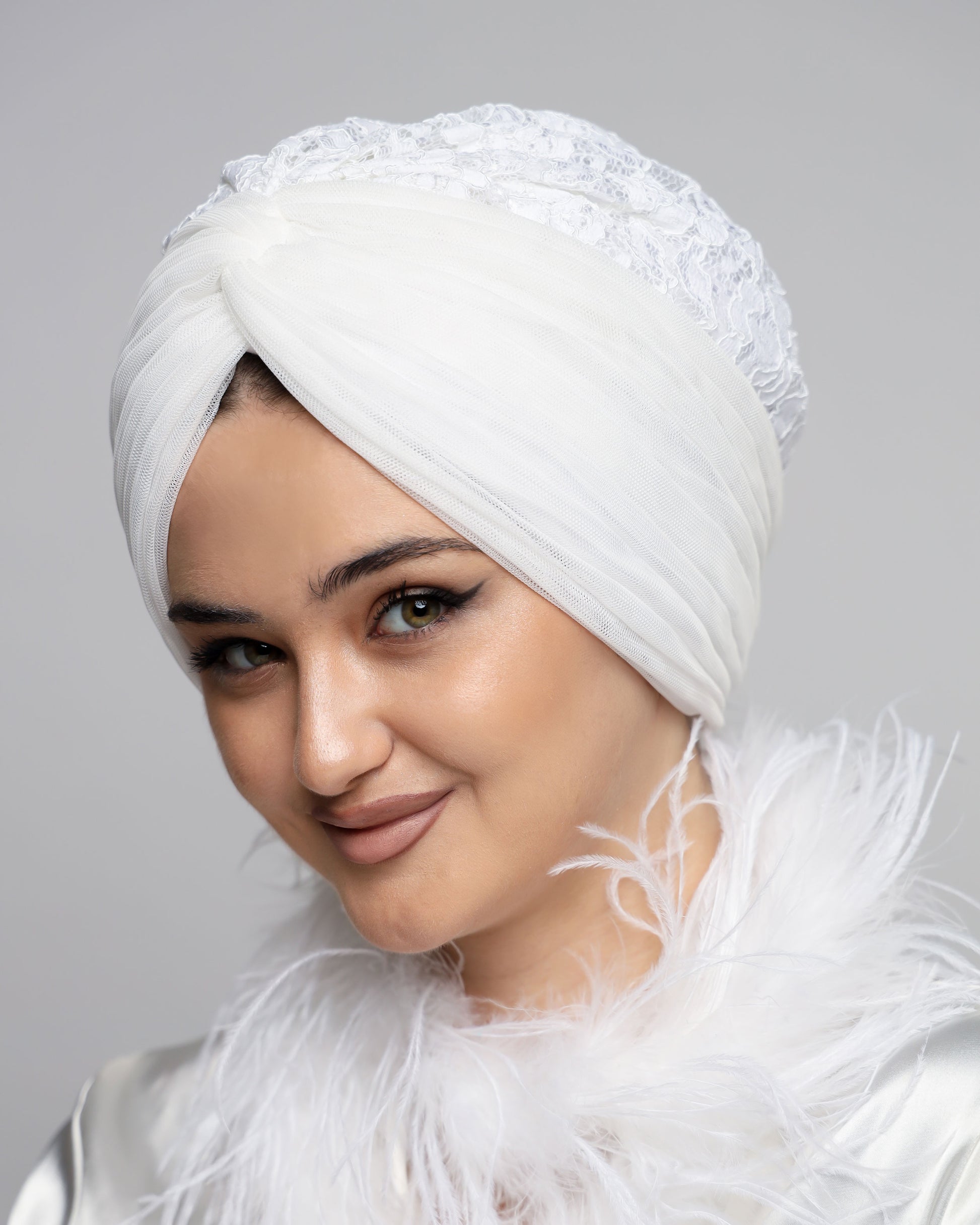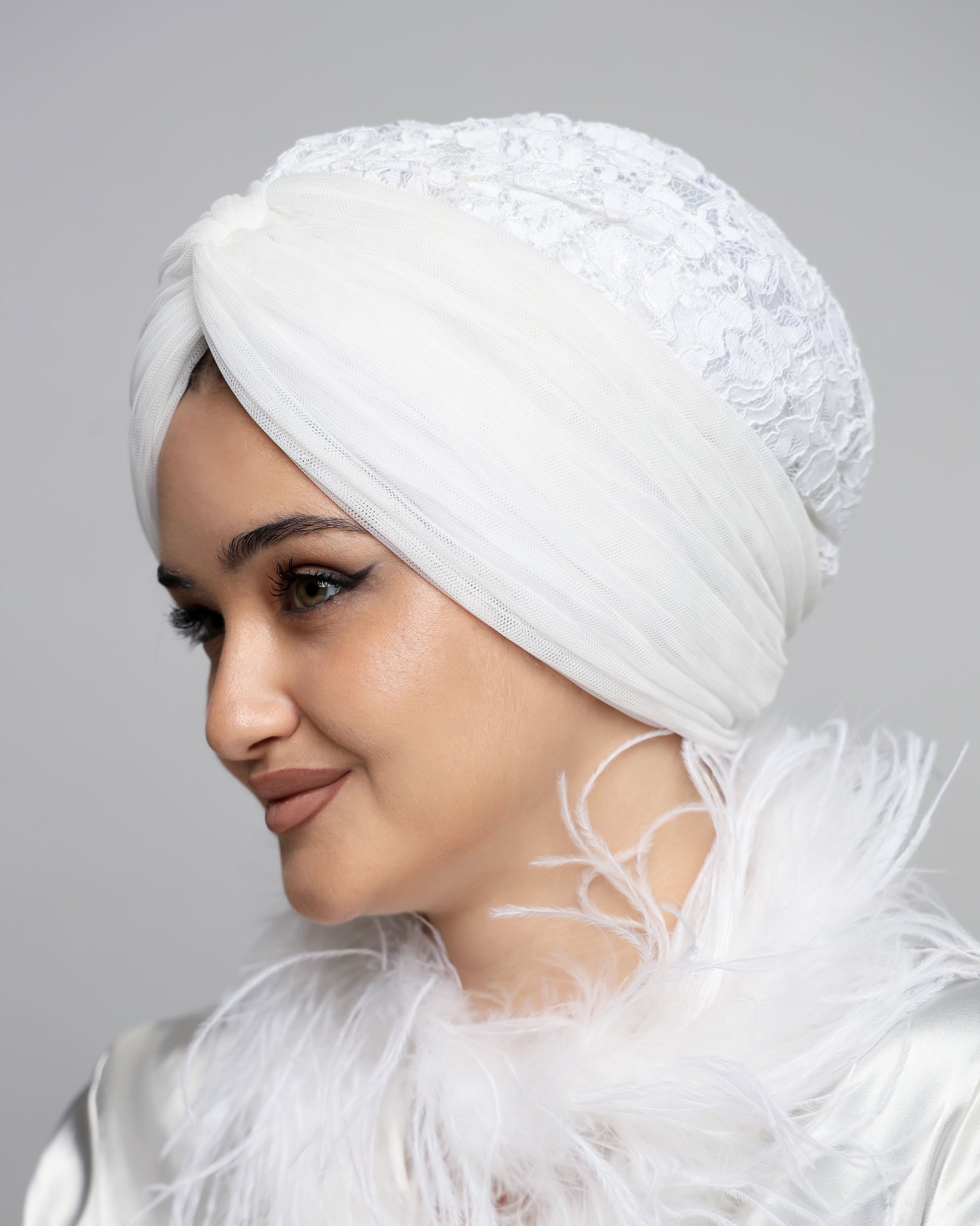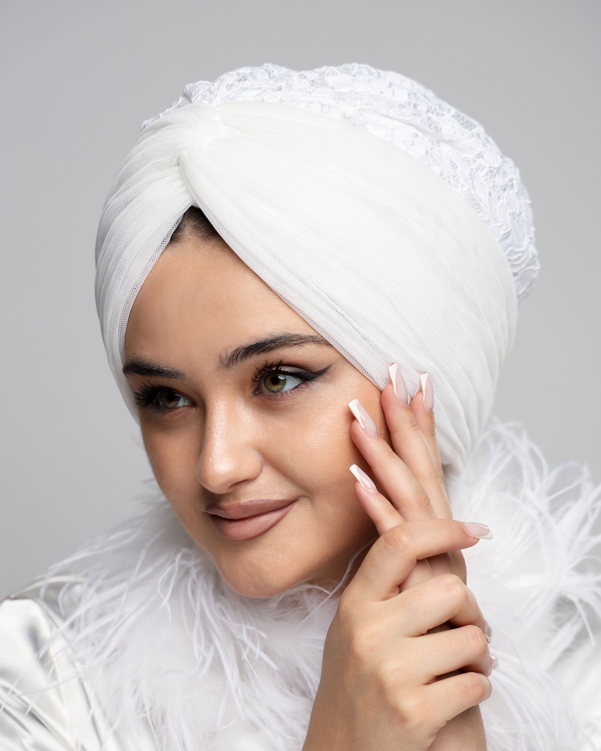 Indulge in the luxurious and sophisticated style of our Bridal Twisted Turban. Crafted with delicate tulle and intricate lace, this turban is the perfect accessory for any bride. Elevate your look with this exclusive piece, designed to add elegance and charm to your special day.