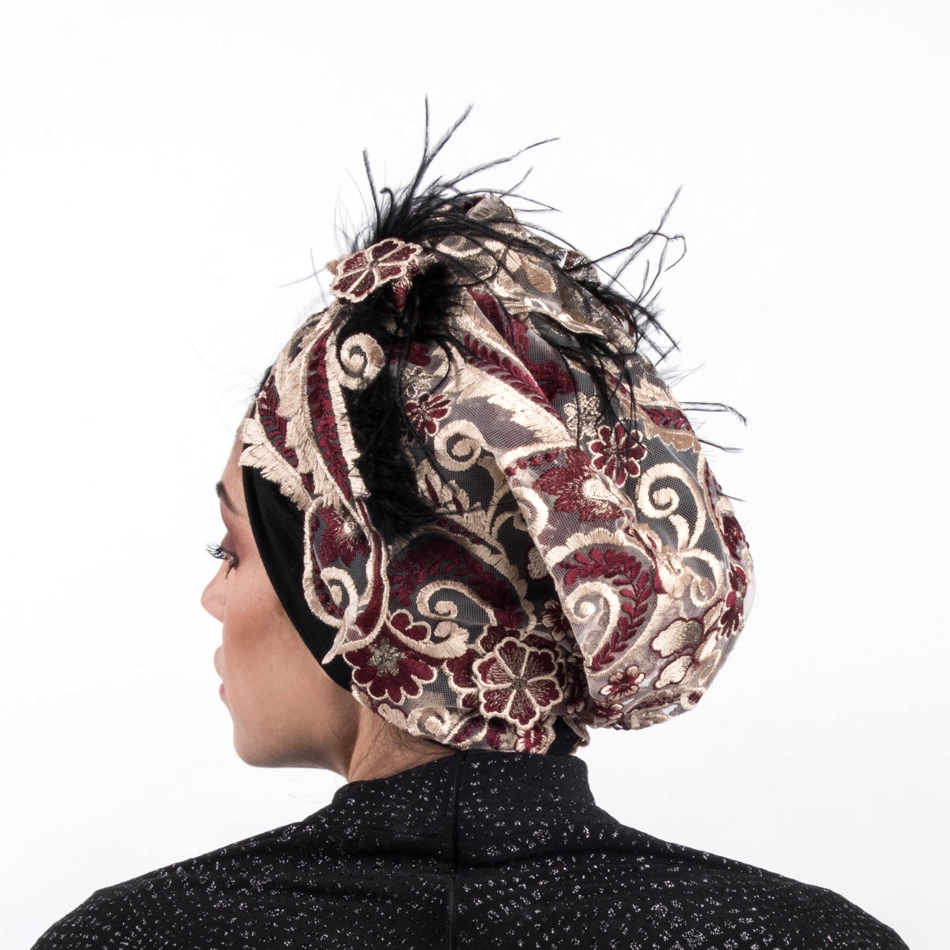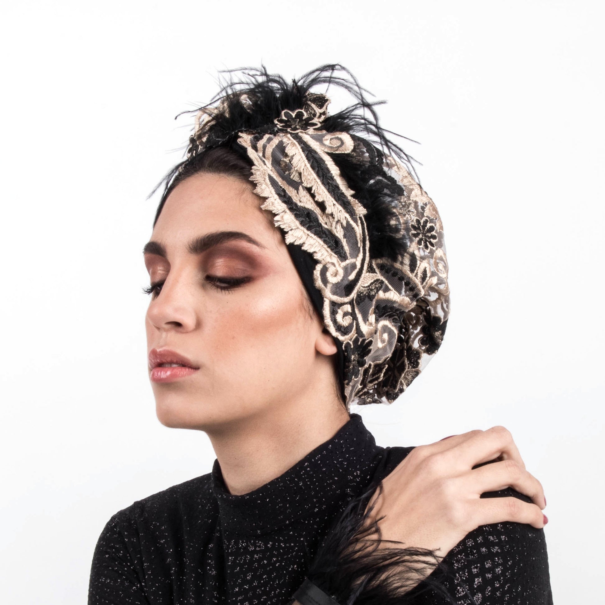 Embrace the dramatic elegance of our limited-edition guipure lace turban. Adorned with delicate feathers and lined with pure cotton, it offers comfort and luxury. Indulge in its intricate beauty and make a statement with every wear. Perfect for special occasions, or anytime you want to add a touch of sophistication to your look.