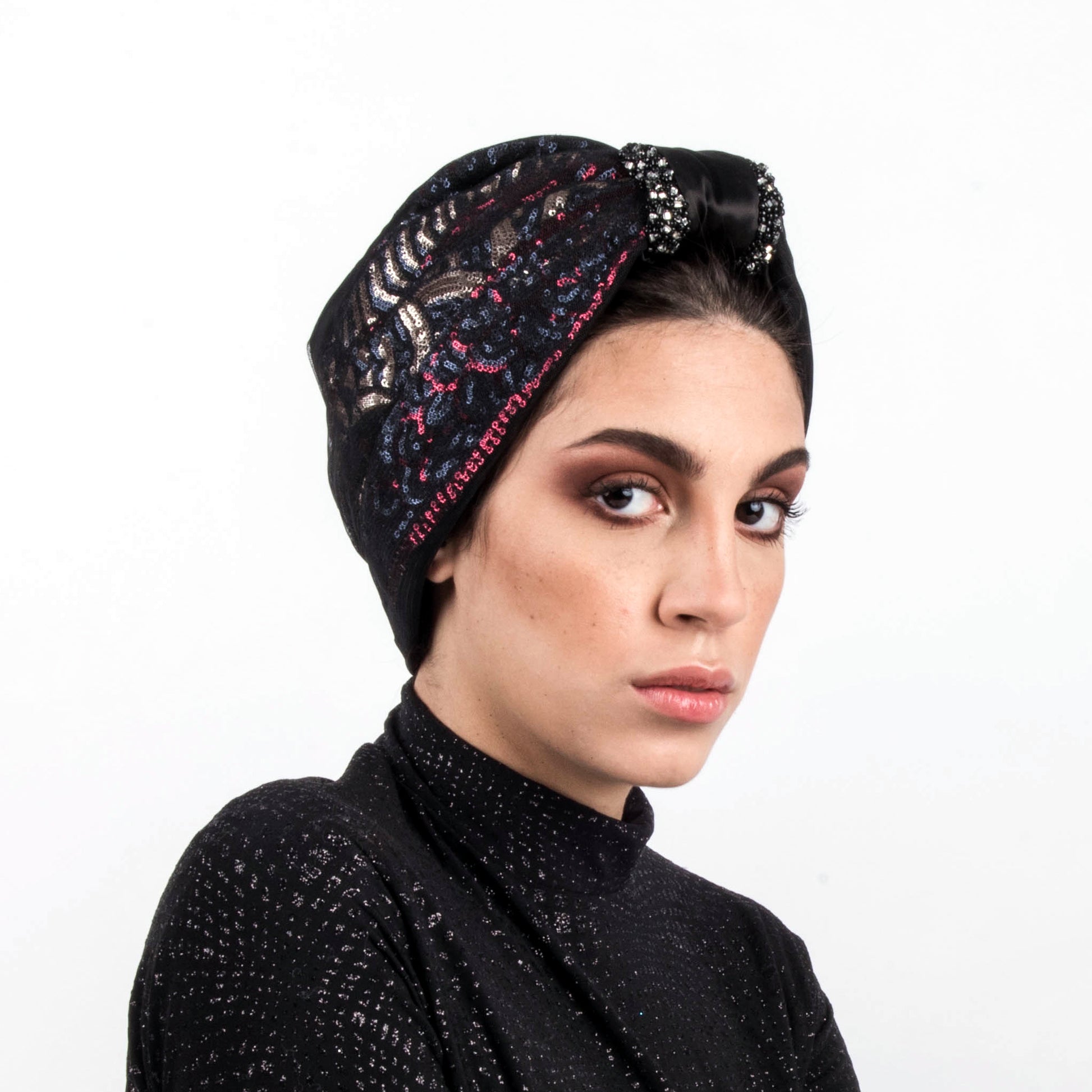Indulge in luxury with our Dramatical nebula sequin turban. Adorned with shimmering sequins in a breathtaking nebula pattern, this turban will make you feel like a star. Lined with soft cotton for maximum comfort, it's the perfect accessory to elevate your style and make a statement at any event.