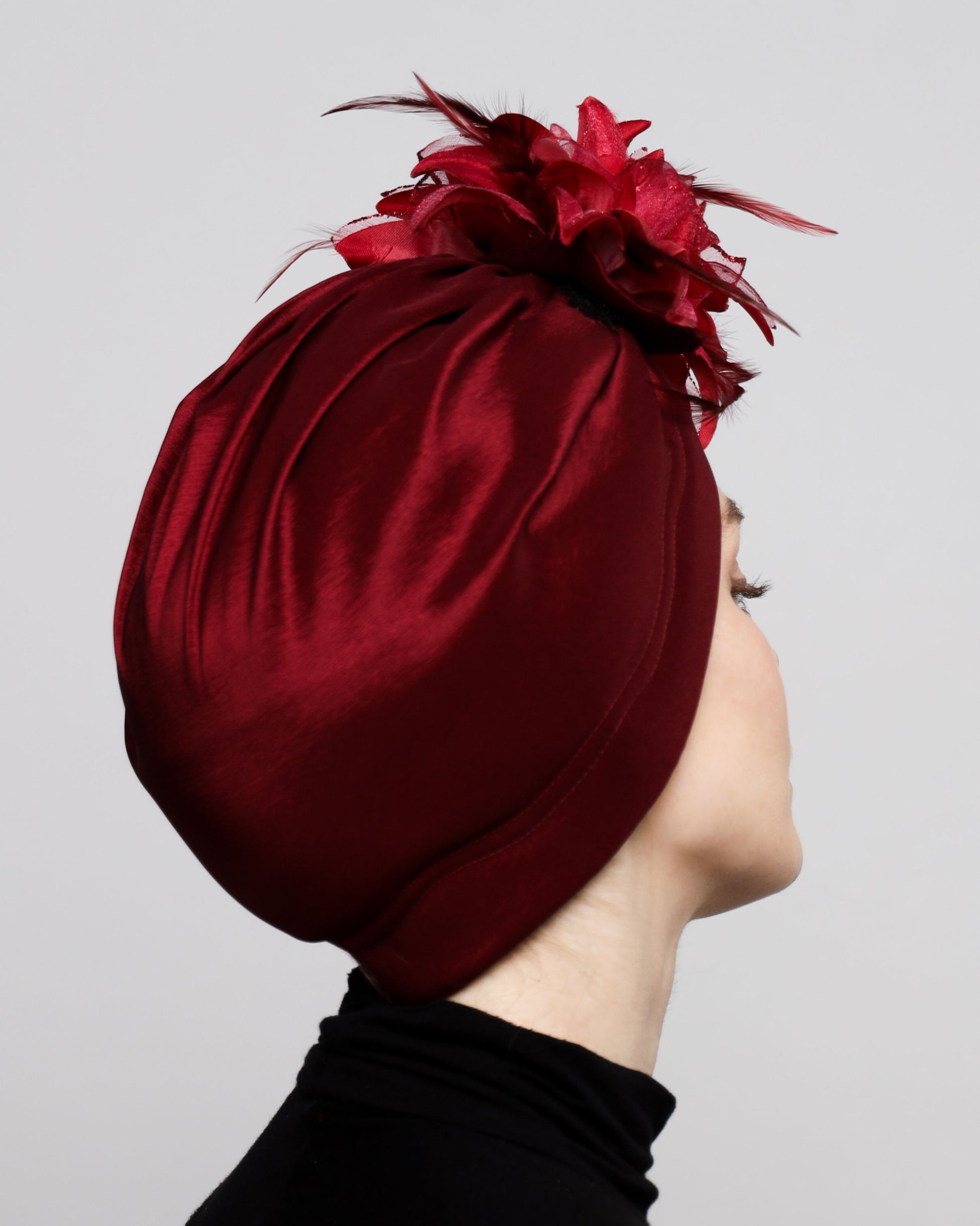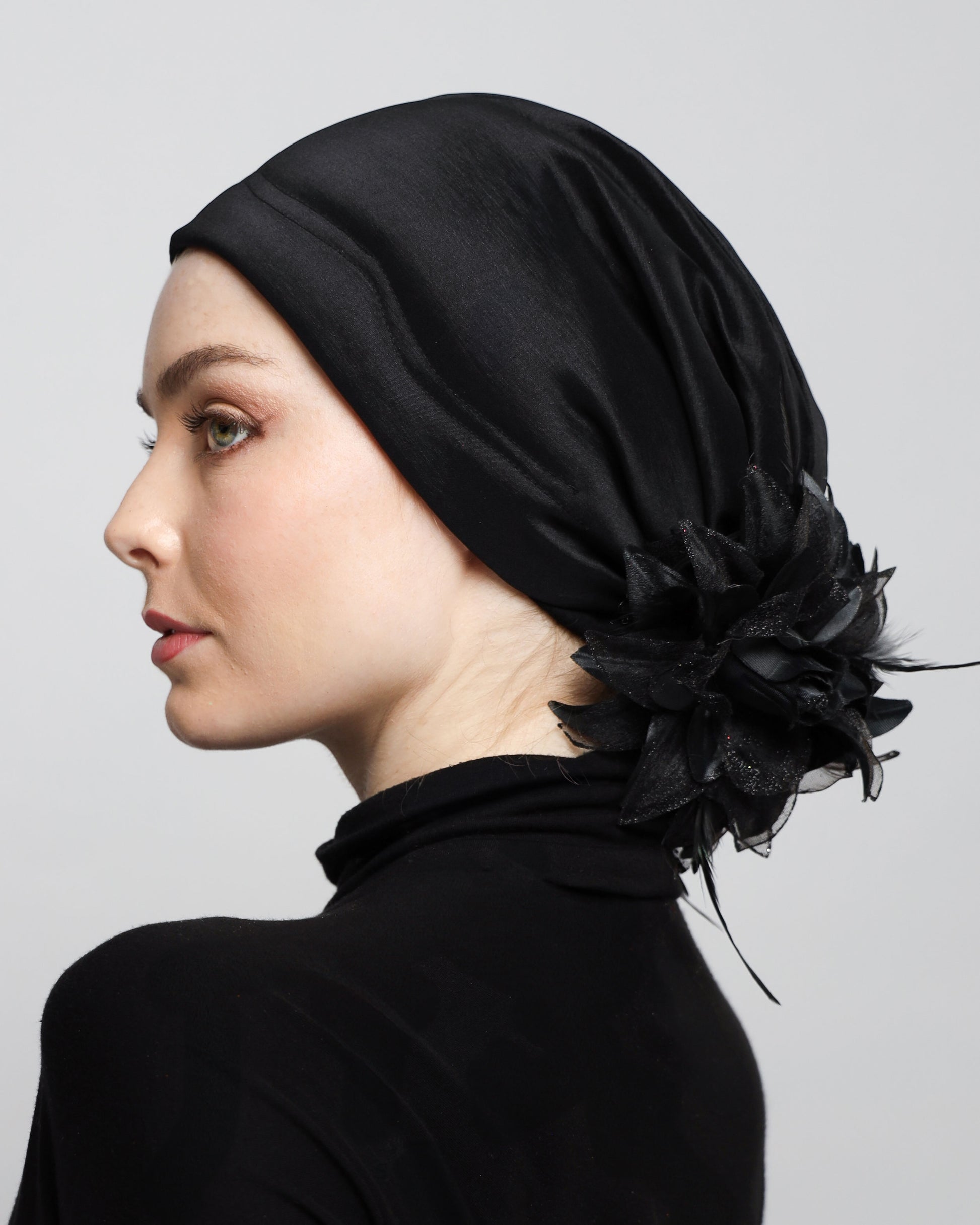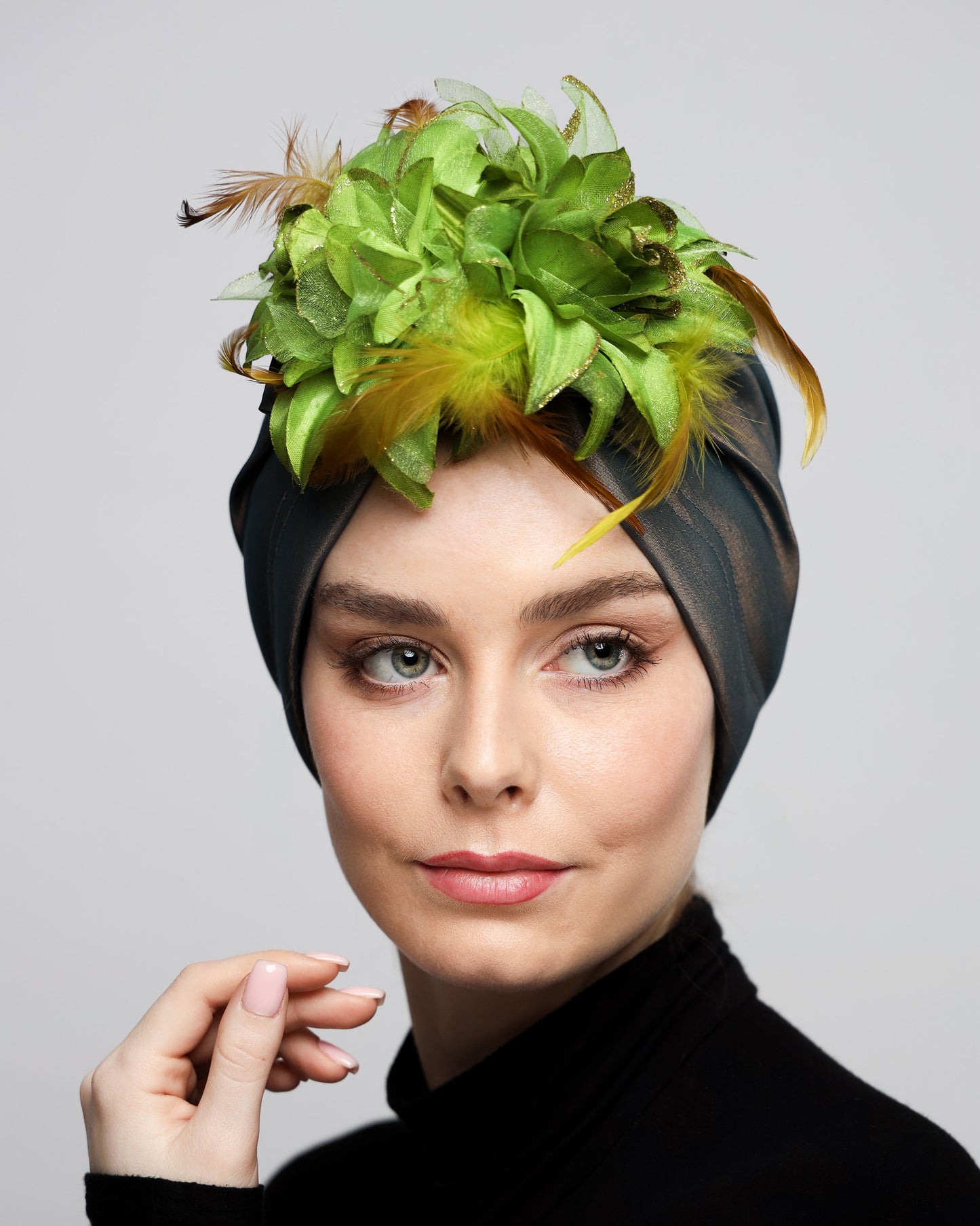Add a touch of elegance to your look with our versatile Elegant Multi-way Turban. Featuring a reversible design, Wear it from both sides and switch up your style with feather flowers, an elegant bow, or ruffles. Perfect for adding a luxurious touch to any outfit.