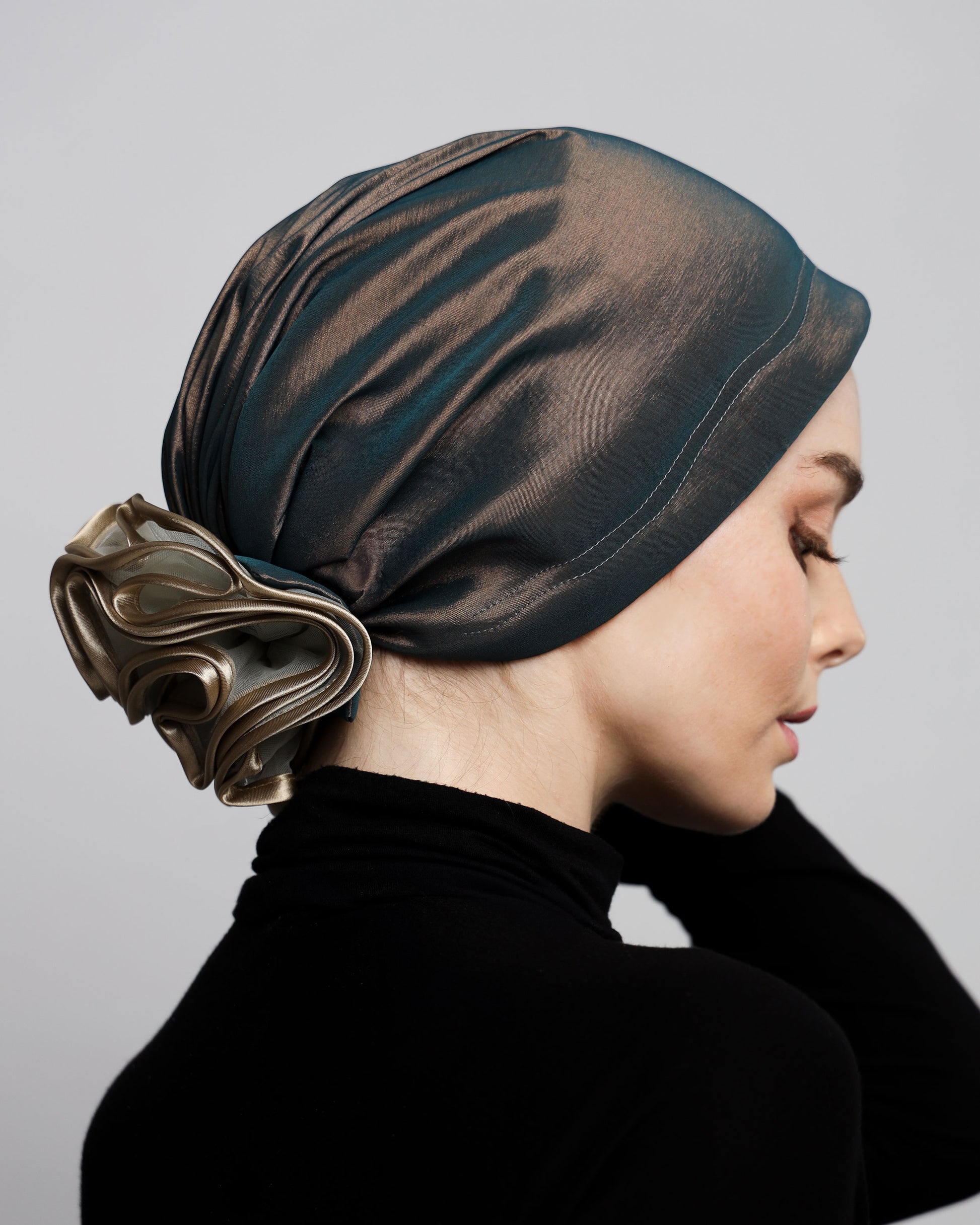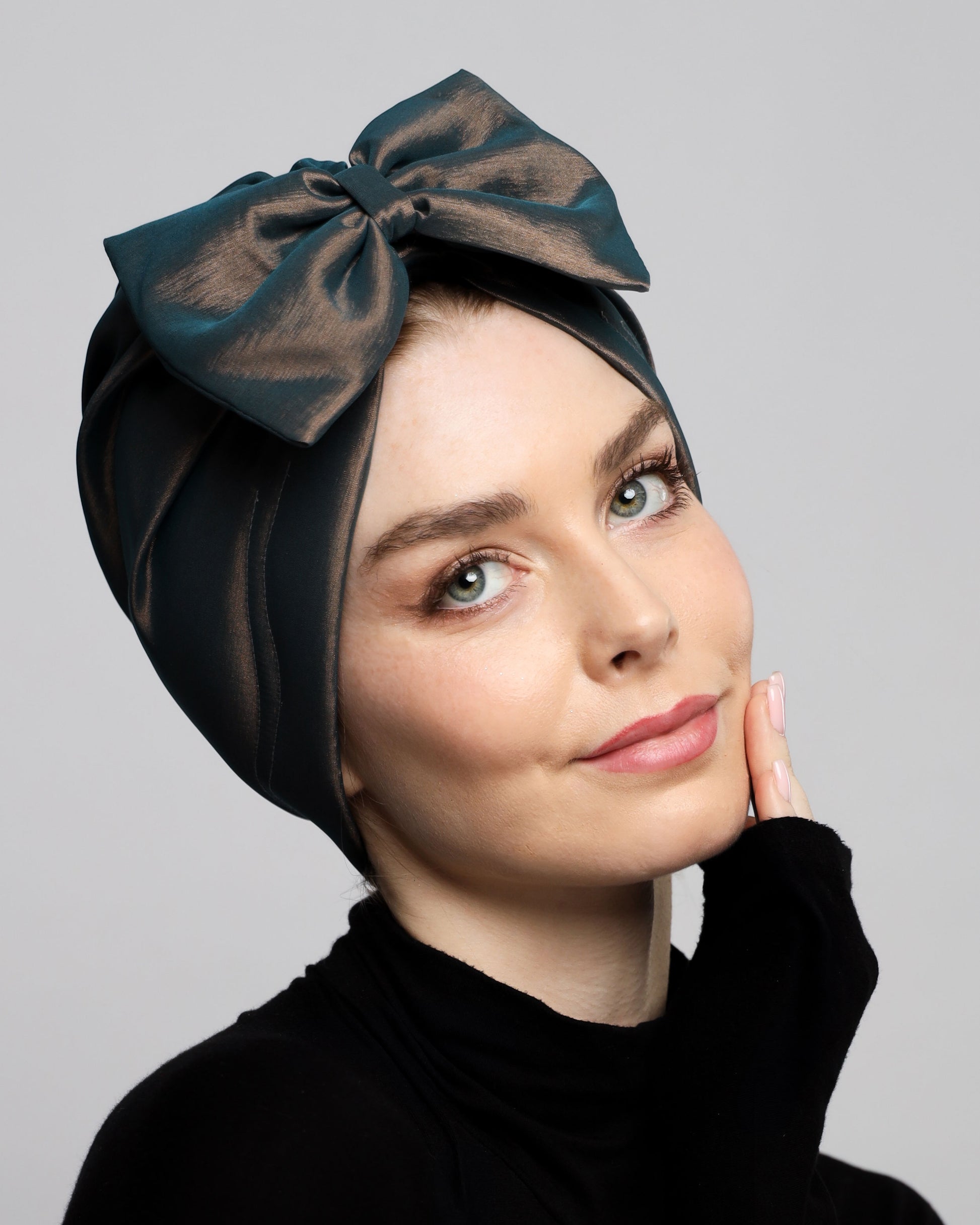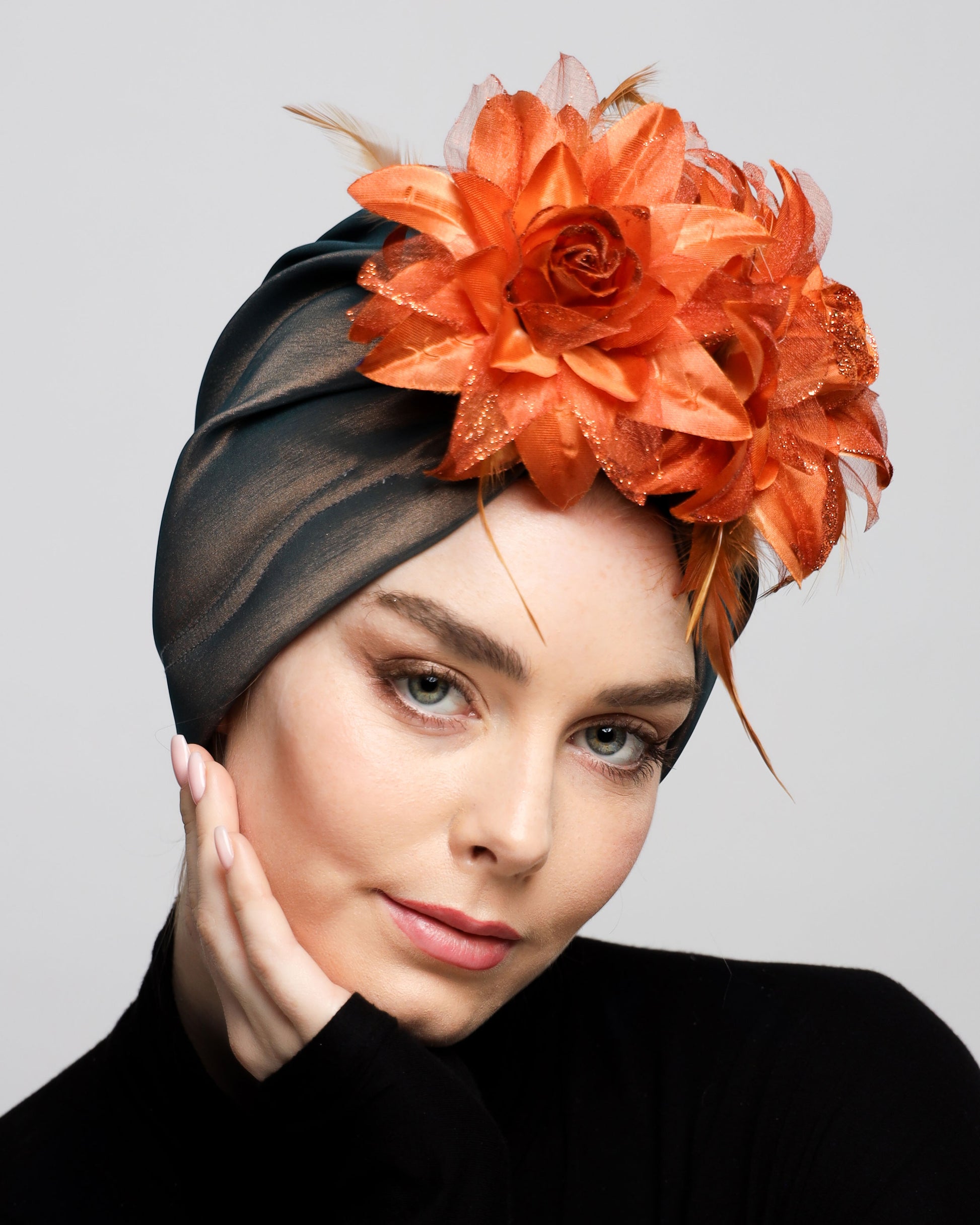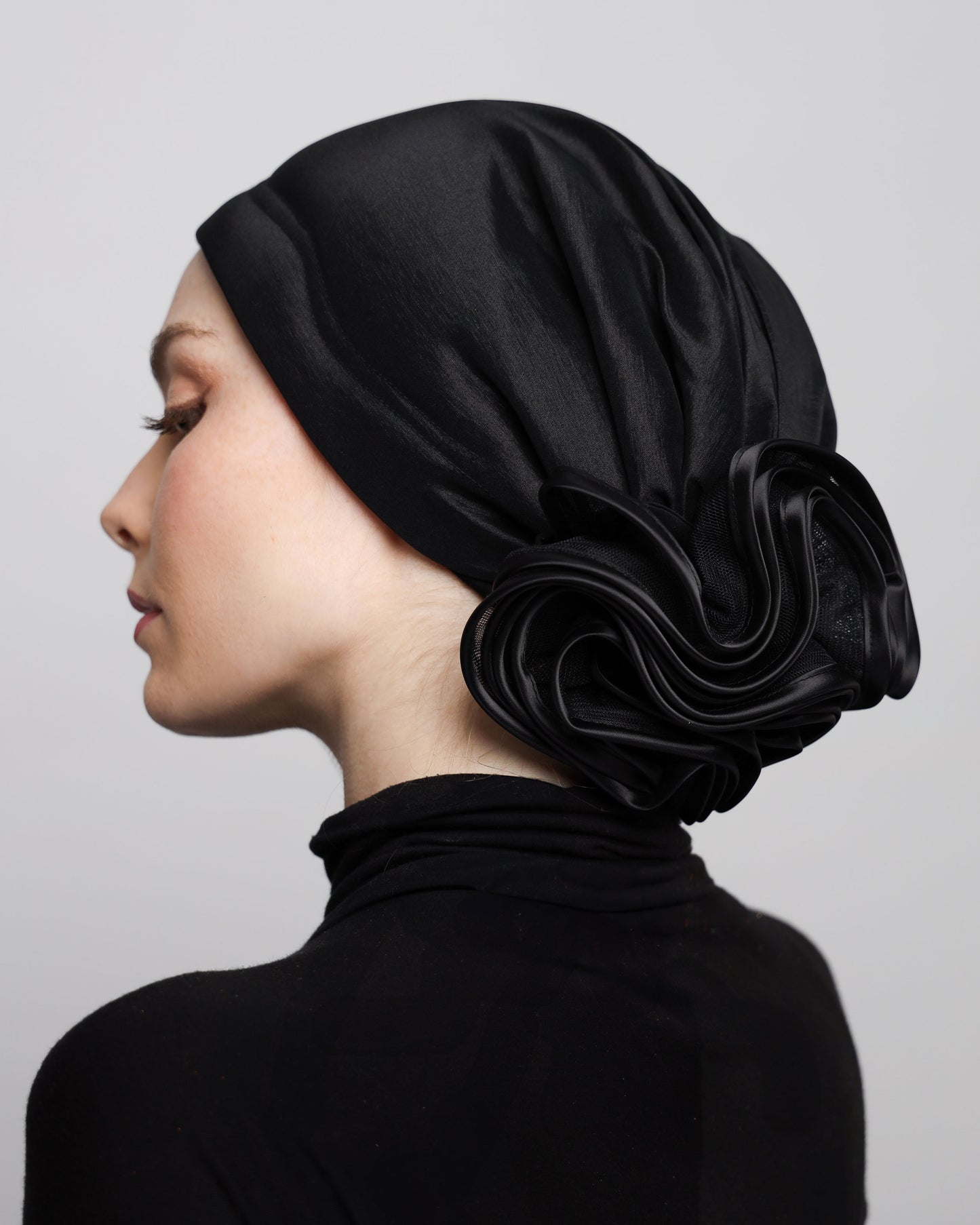 Add a touch of elegance to your look with our versatile Elegant Multi-way Turban. Featuring a reversible design, Wear it from both sides and switch up your style with feather flowers, an elegant bow, or ruffles. Perfect for adding a luxurious touch to any outfit.