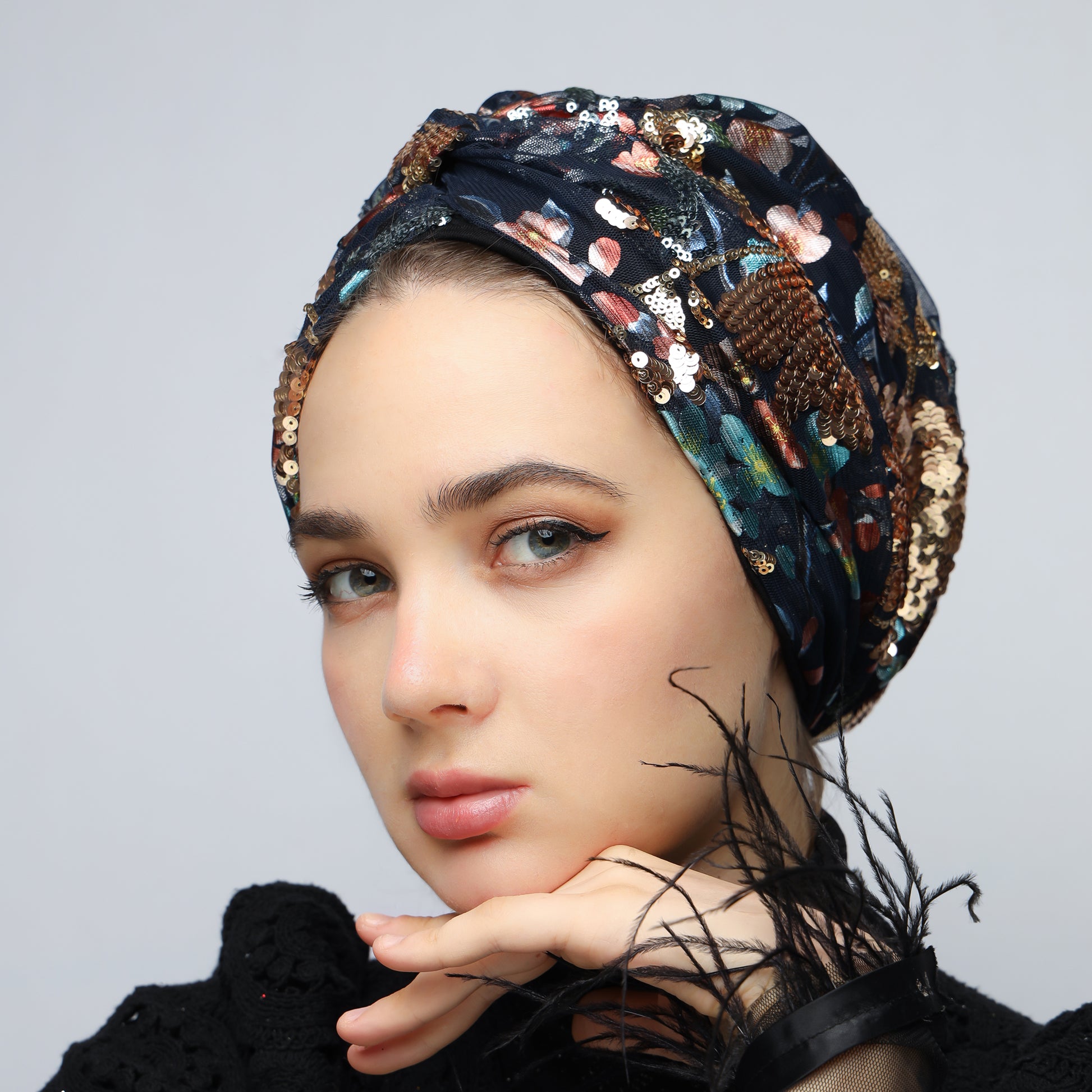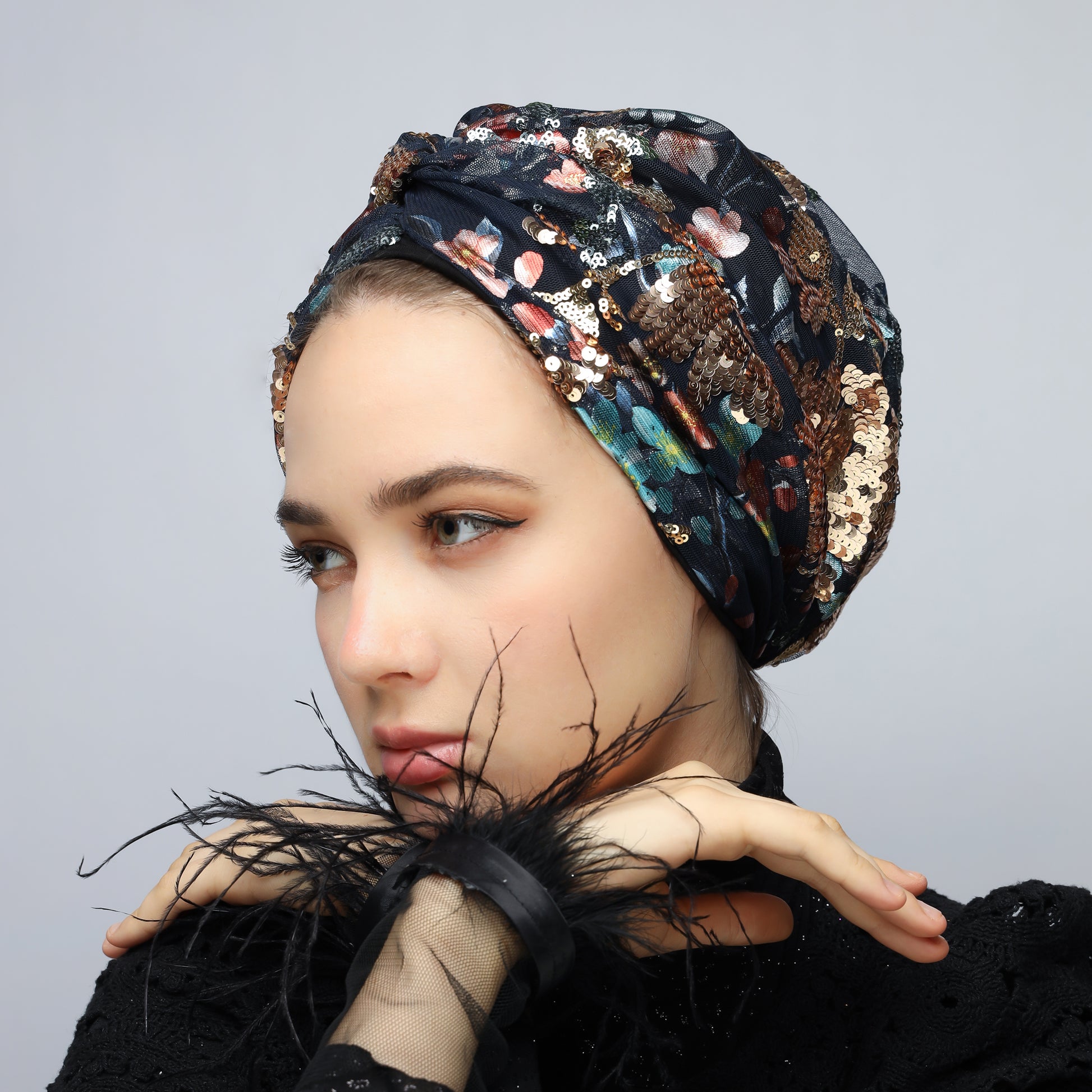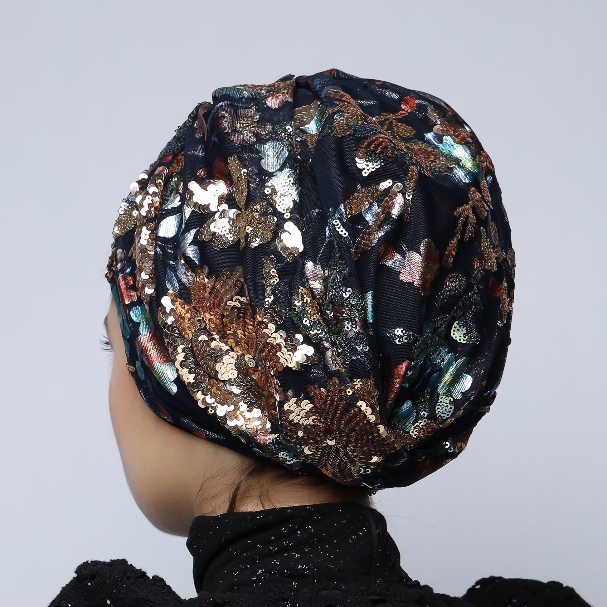 Transform any outfit into a statement piece with our Festive Sequined Turban. Luxuriously lined with soft cotton, this one-size-fits-all headpiece adds a touch of elegance and sophistication. Perfect for any special occasion, our turban is adorned with shimmering sequins that will make you stand out in the most stylish way.