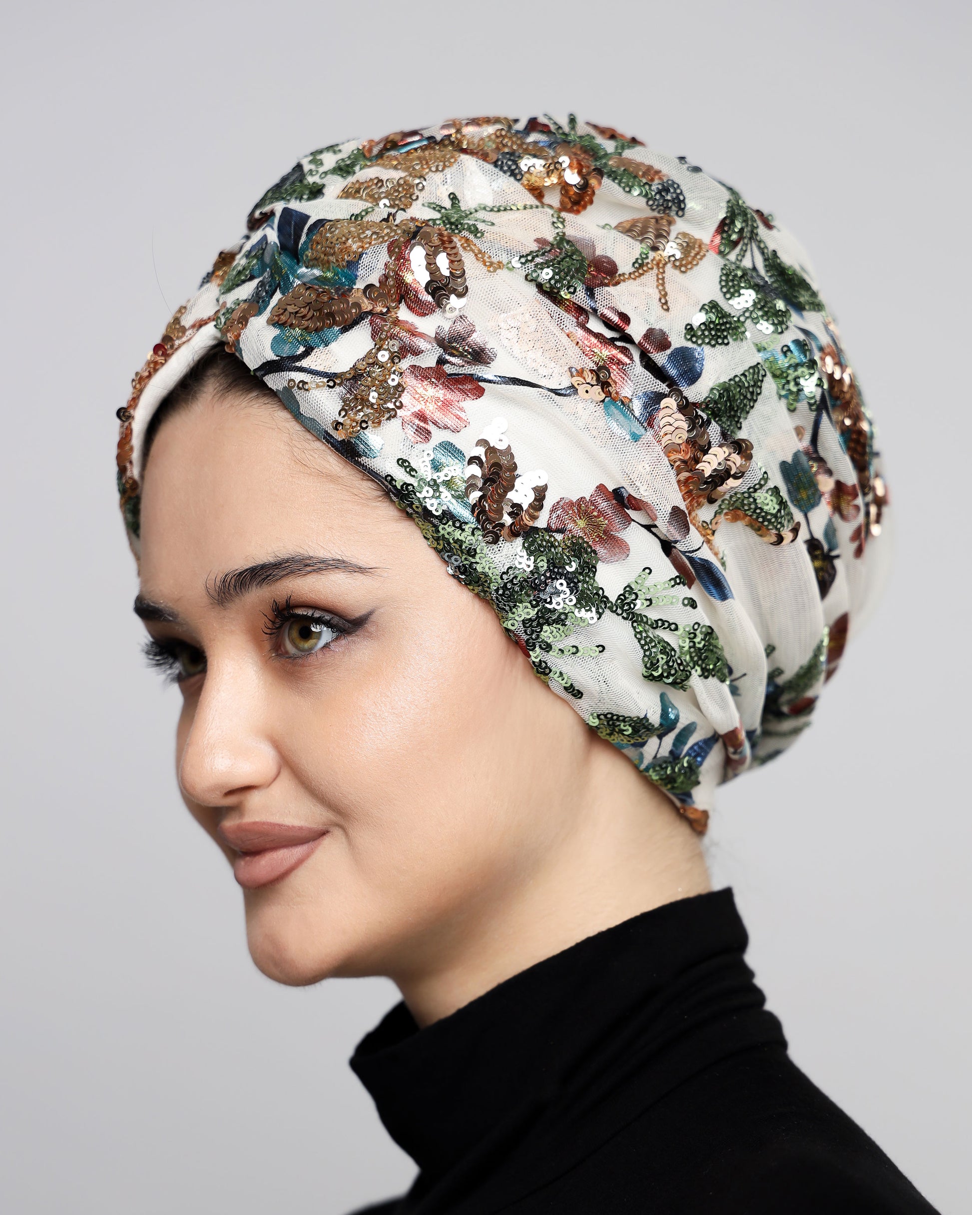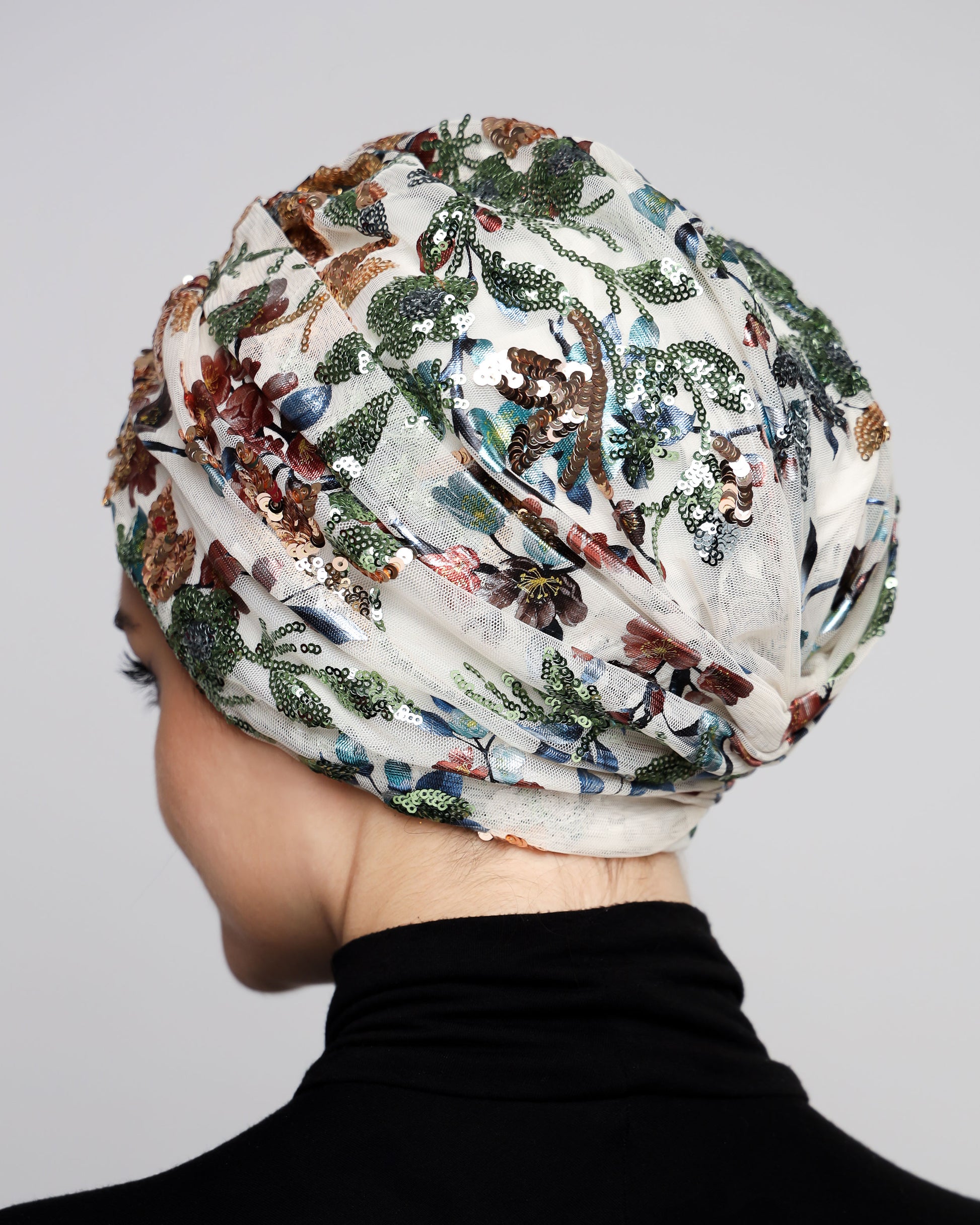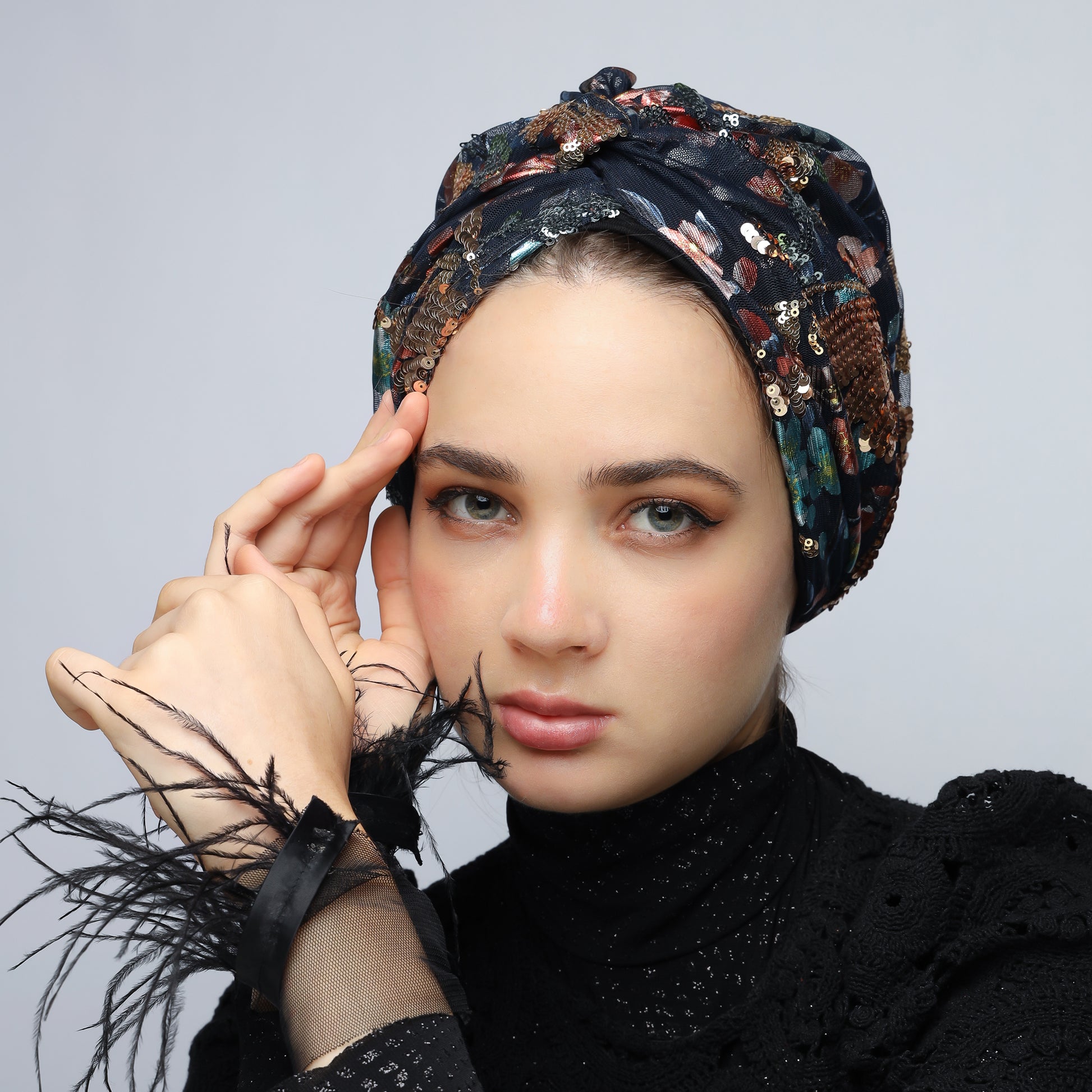 Transform any outfit into a statement piece with our Festive Sequined Turban. Luxuriously lined with soft cotton, this one-size-fits-all headpiece adds a touch of elegance and sophistication. Perfect for any special occasion, our turban is adorned with shimmering sequins that will make you stand out in the most stylish way.