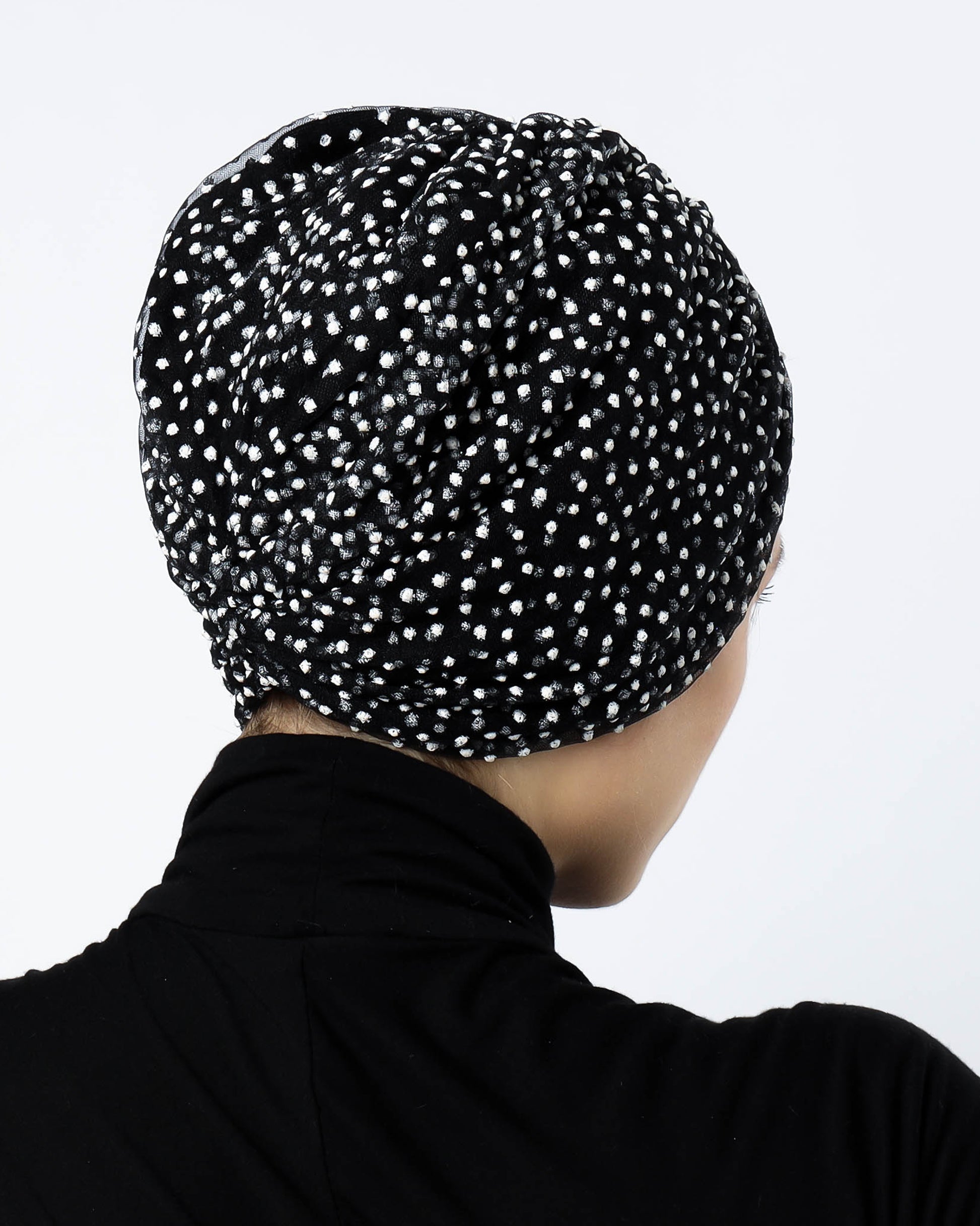 Introducing our Gathering polka dots Turban, made with luxurious tulle lined with pure cotton for a comfortable fit. This one size fits all turban adds a touch of sophistication to any outfit, perfect for those looking for a unique and elegant accessory. Elevate your style with this exclusive piece.