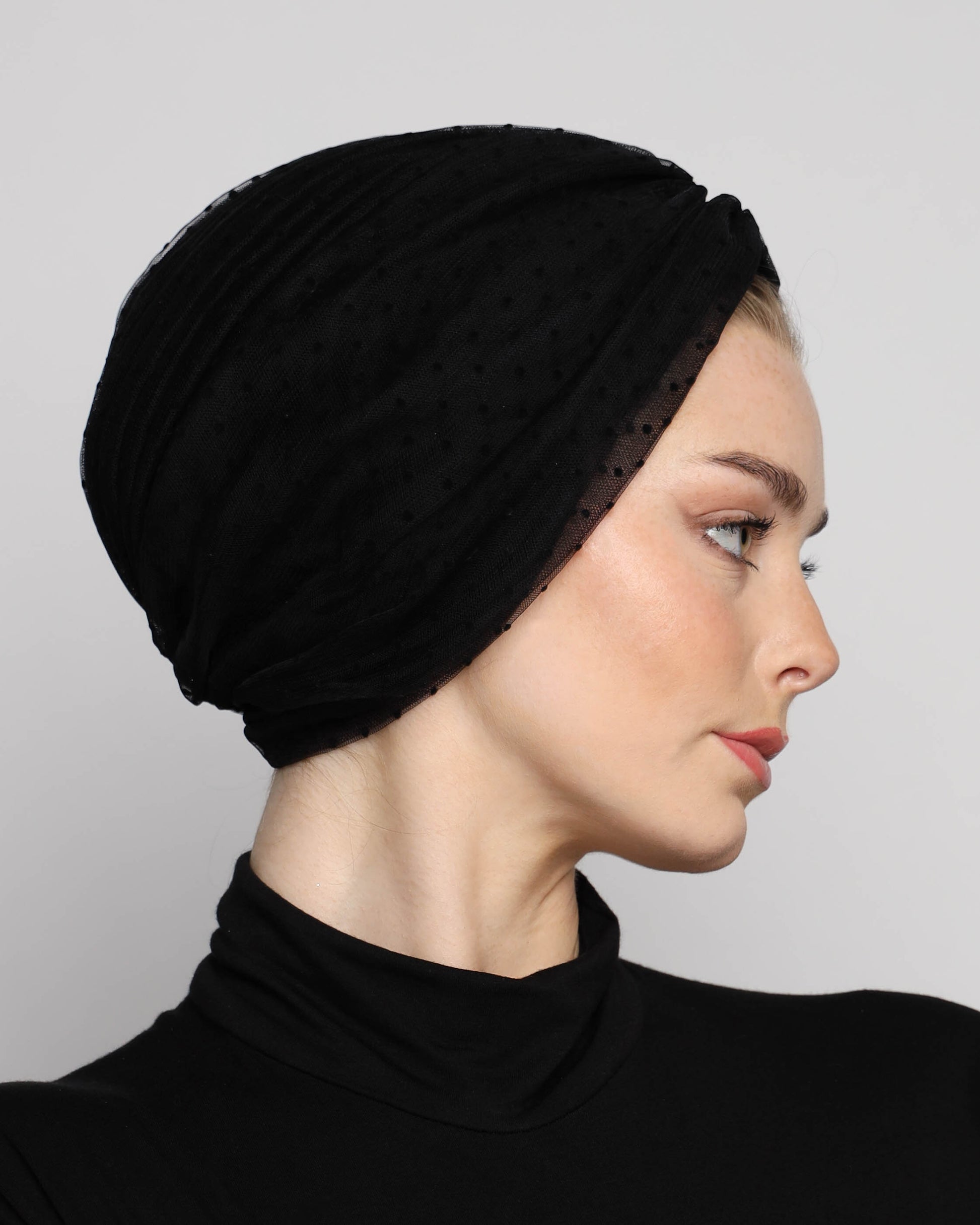 Elevate your style with our stunning Gathering Polka Dots Turban. Crafted with intricate gathering details and a bold polka dot pattern, this turban adds a touch of sophistication to any outfit. Made from premium materials, it offers both comfort and style. Perfect for any occasion, make a statement with this exclusive accessory.