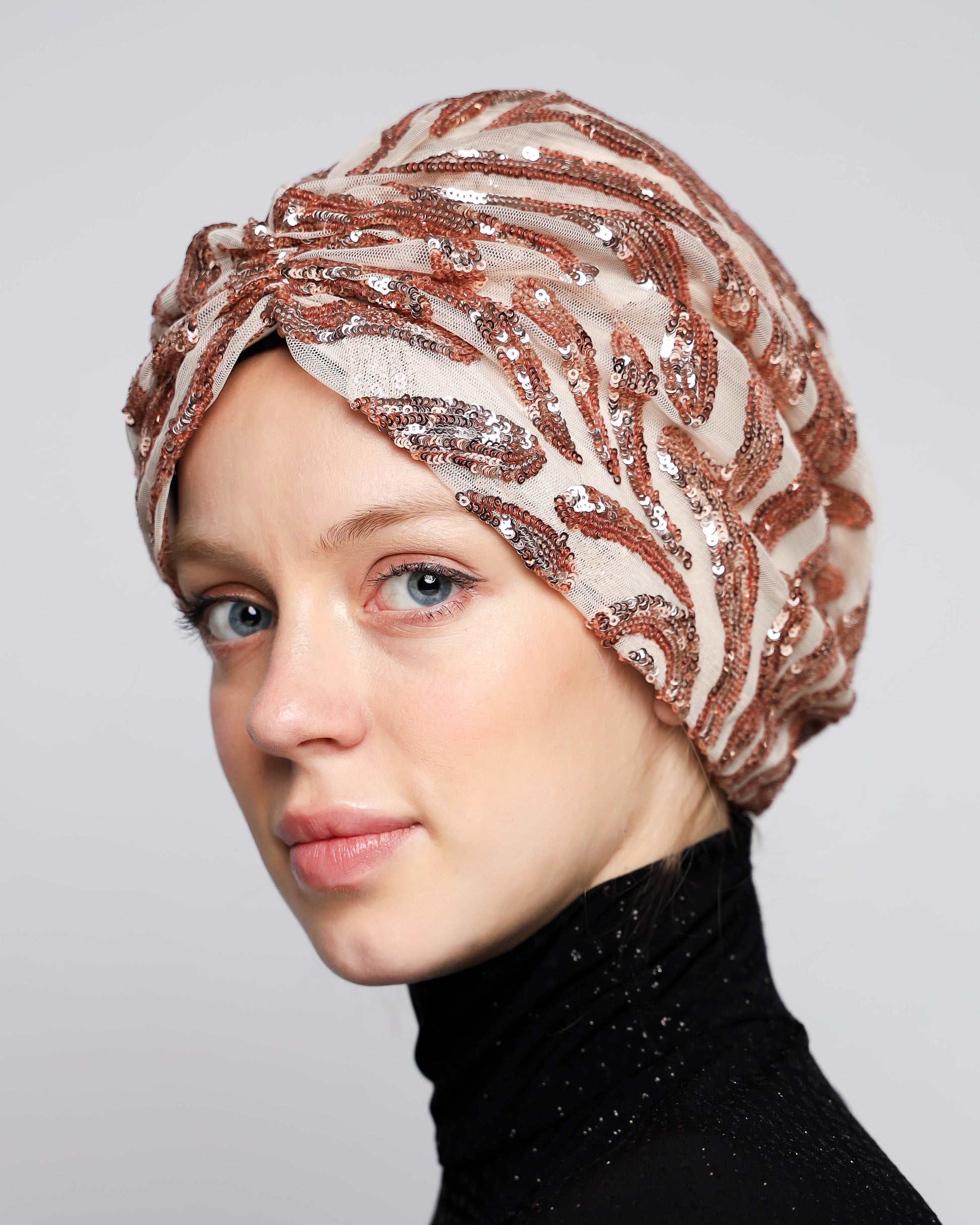 Indulge in luxury with our Gathering Simon Sequin Turban. Featuring intricate gathering and shimmering sequins, this turban is a timeless accessory that will elevate any outfit. Embrace a sophisticated and exclusive style with this stunning piece.