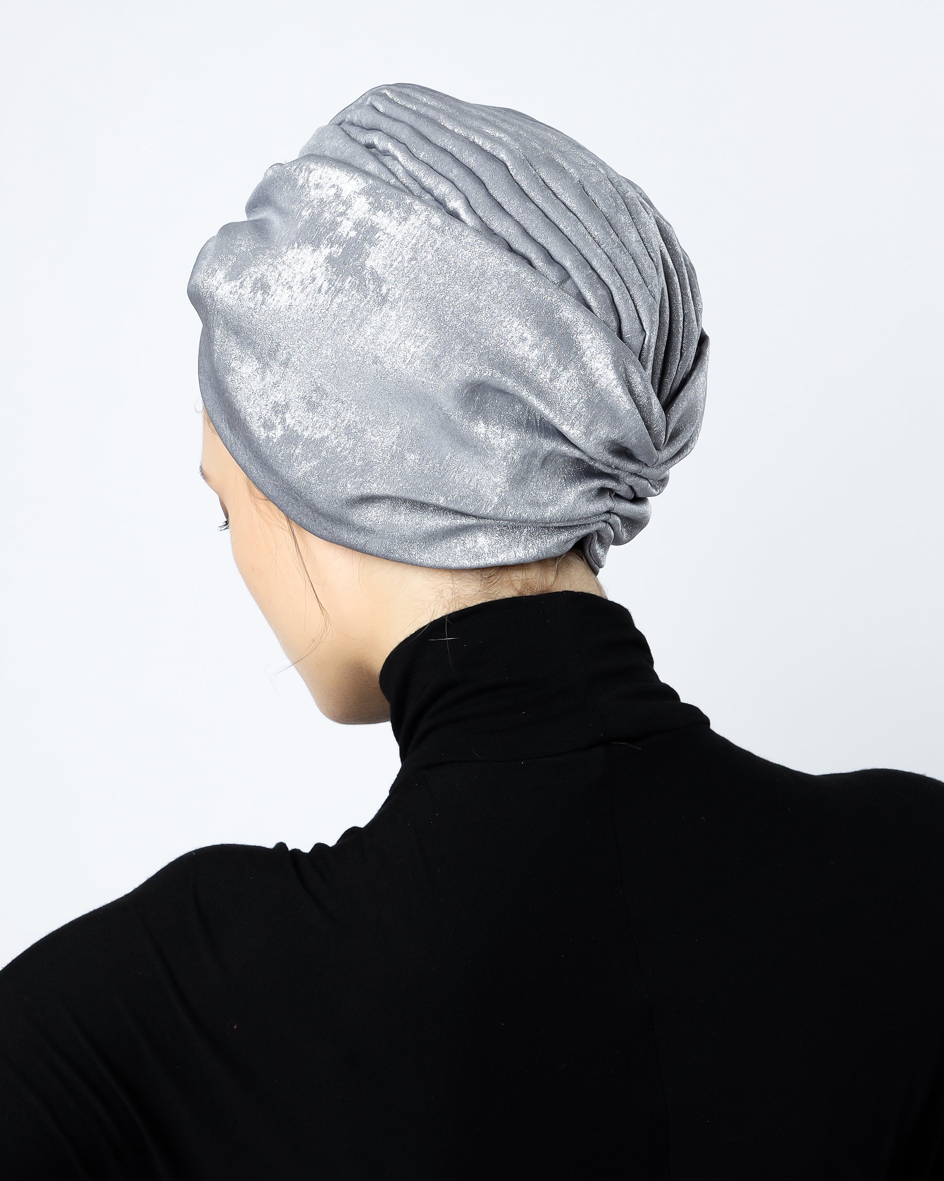 Elevate your style with our Glam Metallic twisted lines turban. The luxurious fabric is lined with delicate tulle, providing a comfortable and elegant fit. With its unique twisted design, this turban adds a touch of sophistication to any outfit. One size fits all for effortless glam.
