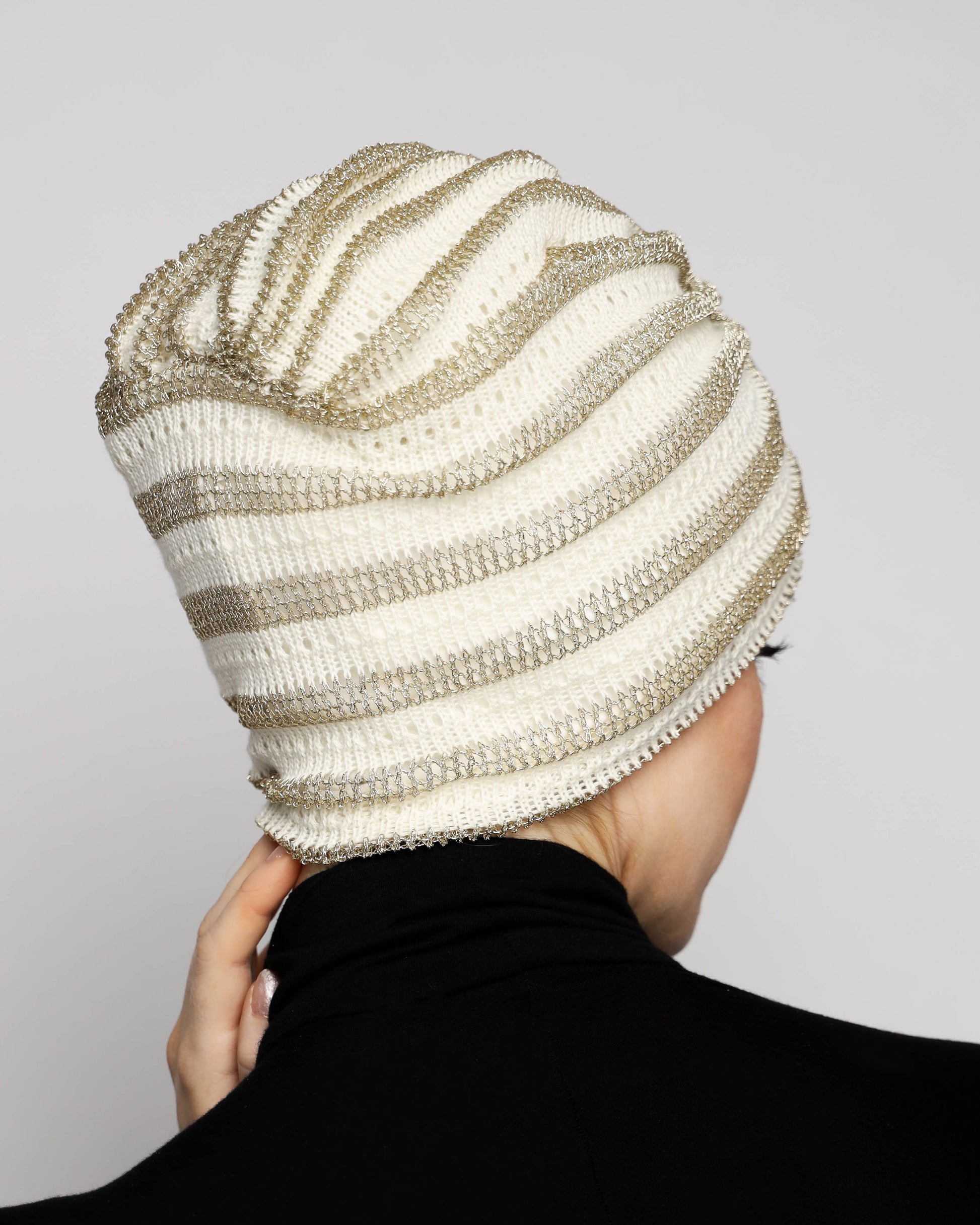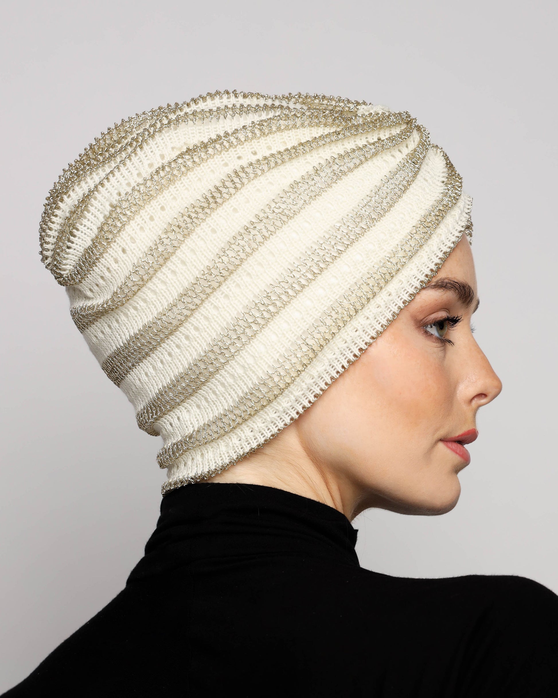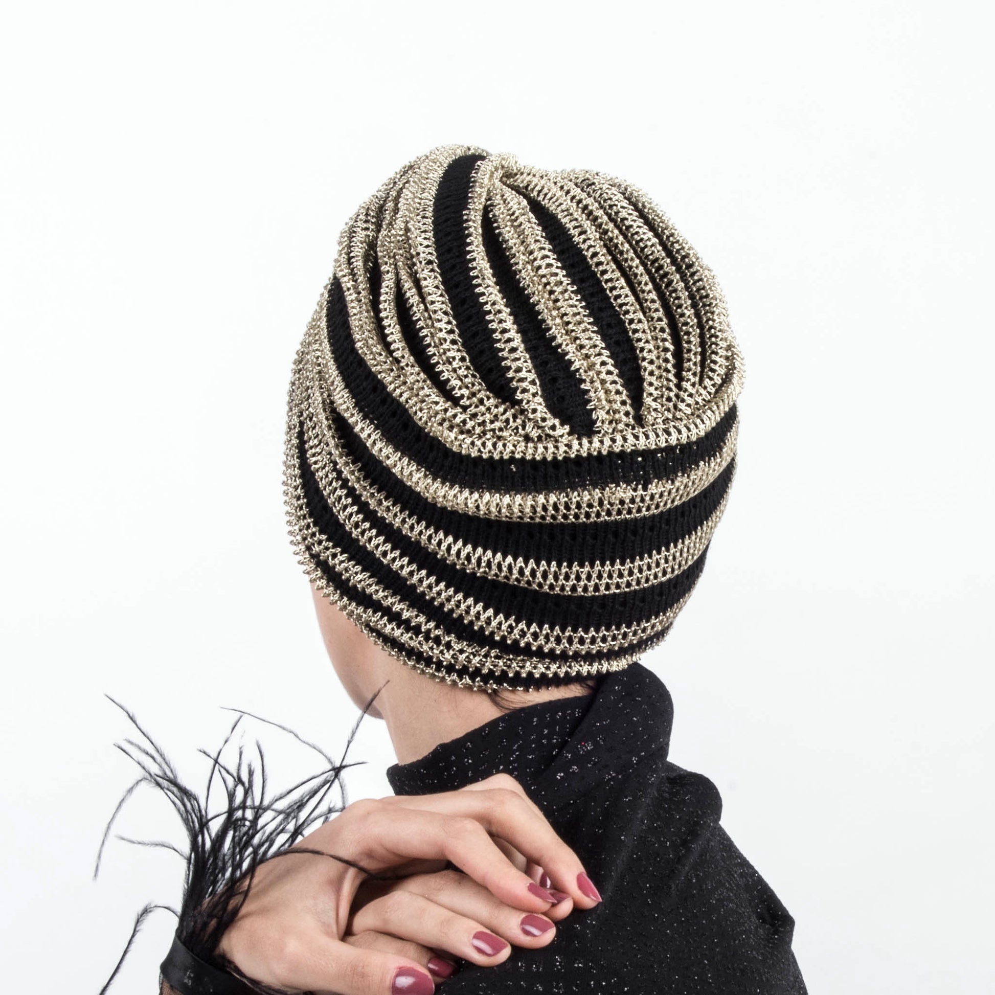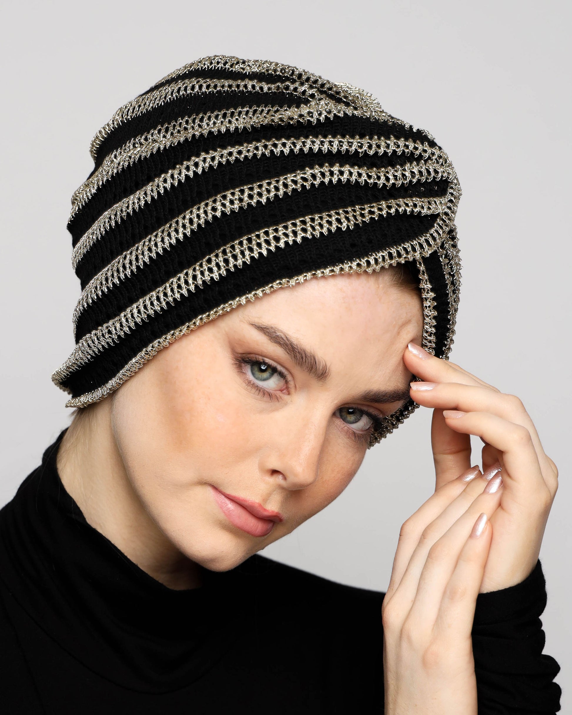 Indulge in luxurious comfort with our Knitting Turban. Featuring elegant gold knitting lines and a soft cotton lining, this one size fits all turban adds a touch of sophistication to any outfit. Perfect for a relaxed day or a night out on the town. Elevate your style with our Knitting Turban.