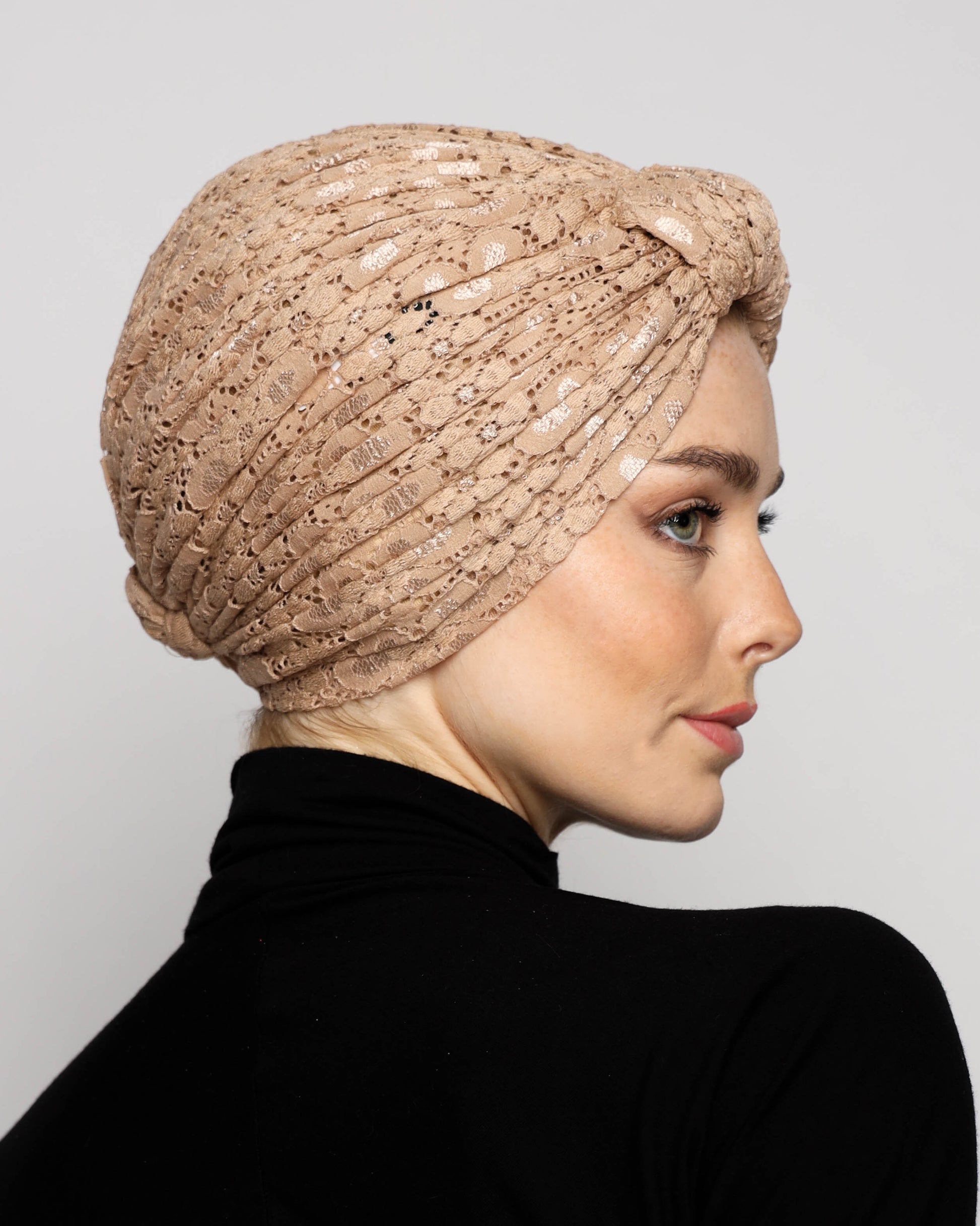 Introducing the Lace Lines Turban, a luxurious addition to your wardrobe. Made with intricate lace details and a comfortable fit, elevate your style with this elegant statement piece. Perfect for any occasion, this turban will add a touch of sophistication to your look.