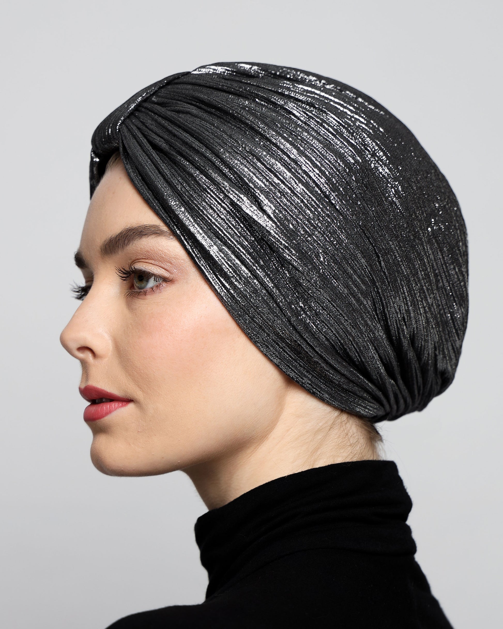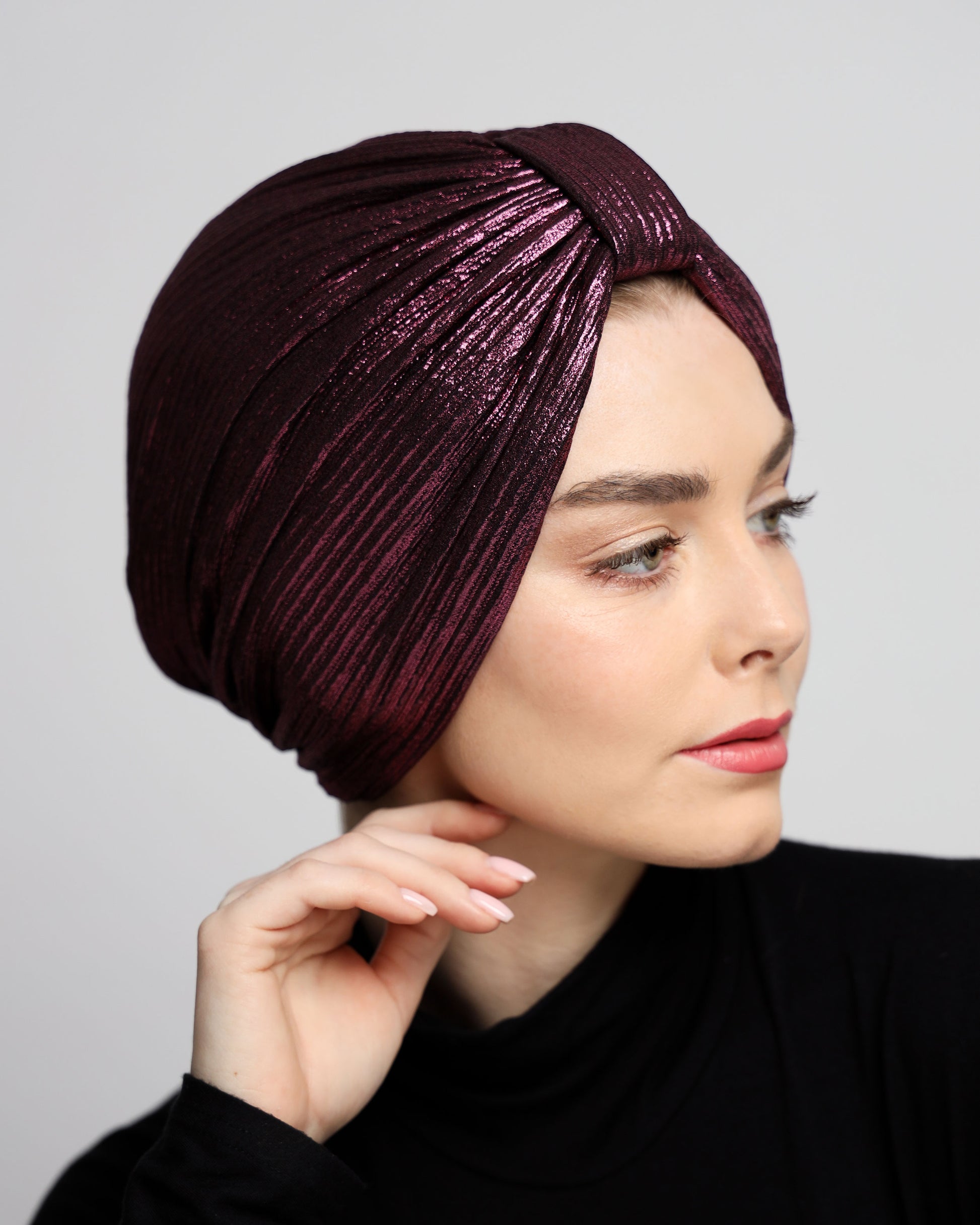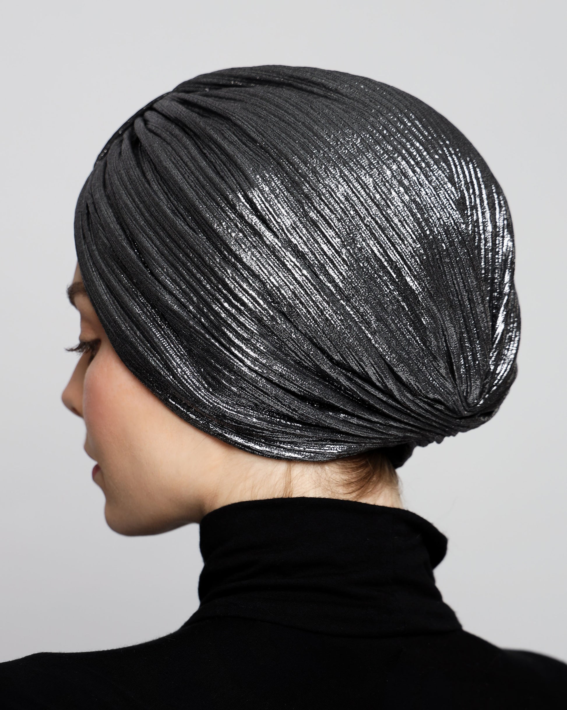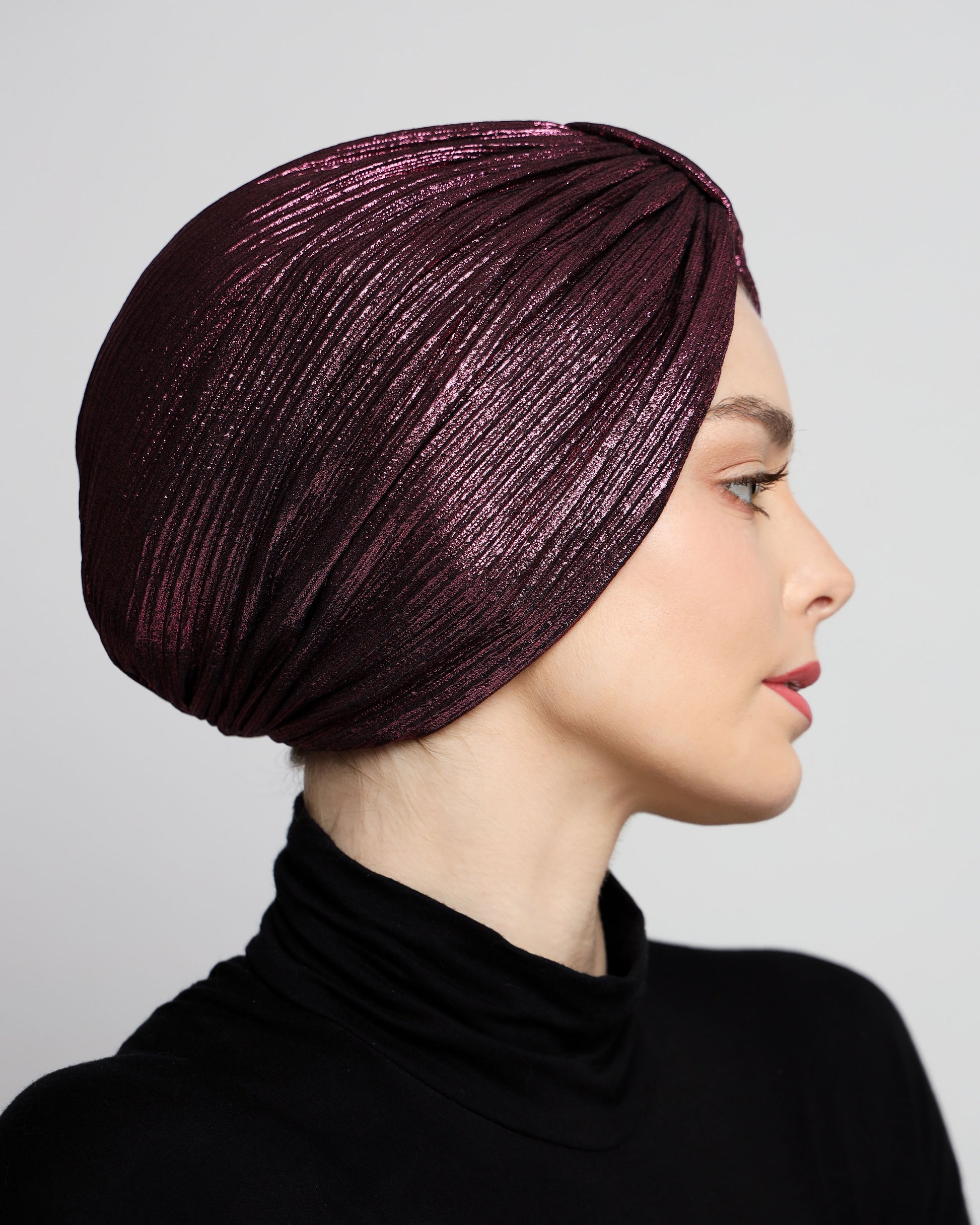 Indulge in luxury and elevate your style with our Metallic Plisse Turban. This elegant headpiece is crafted from high-quality metallic plisse fabric, adding a touch of shimmer to your look. Wear it as a statement piece or pair it with your favorite outfit for a sophisticated touch.
