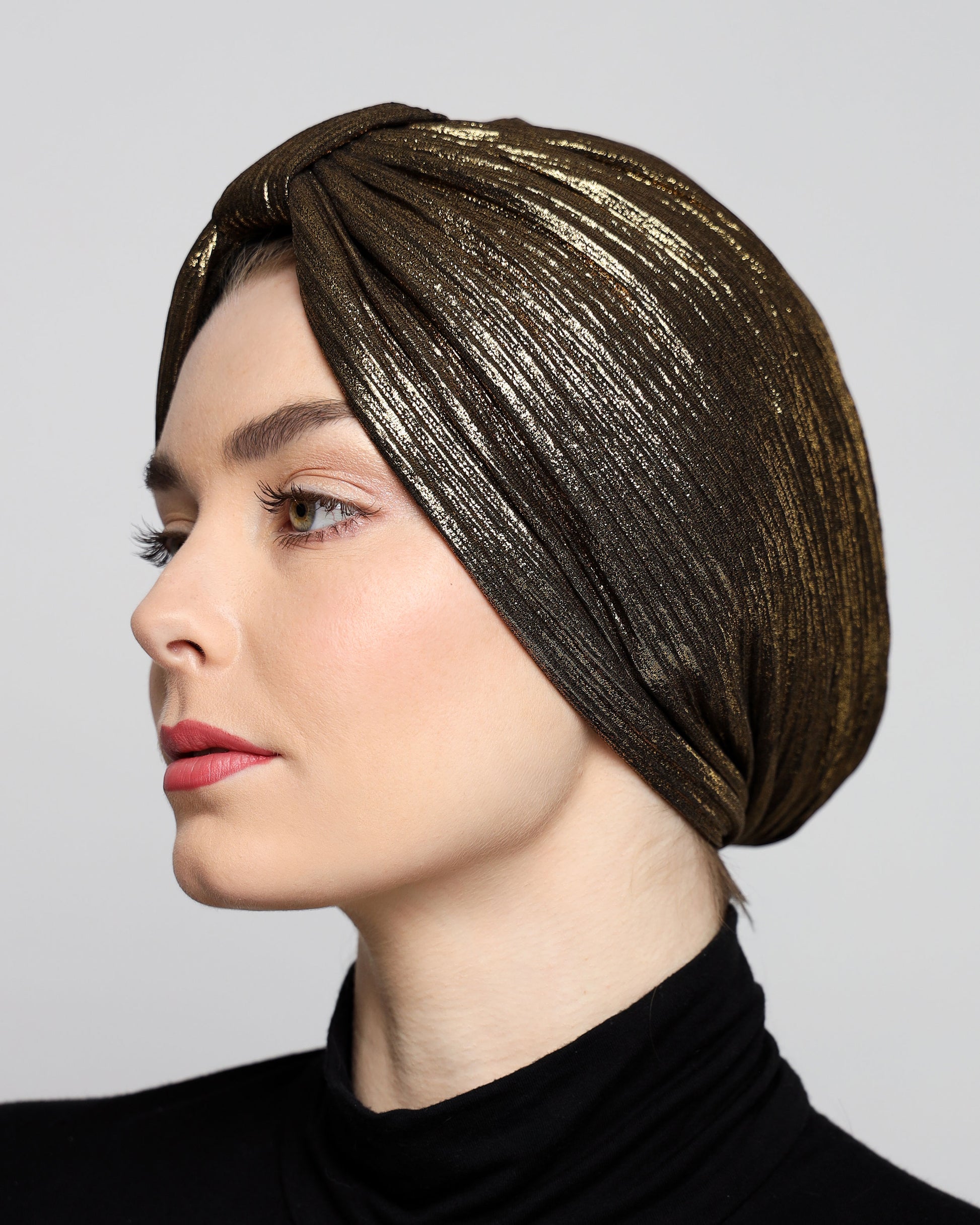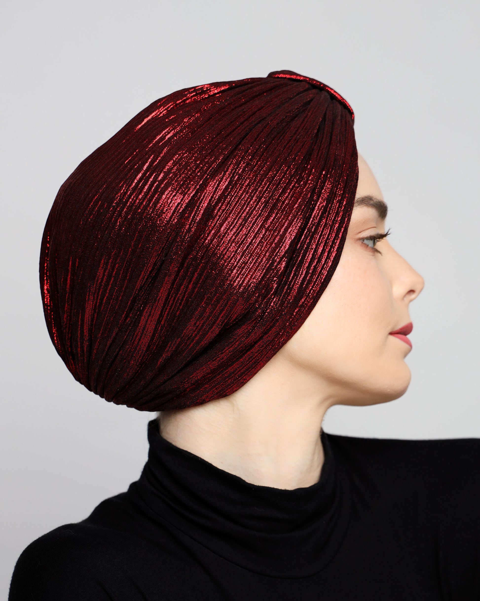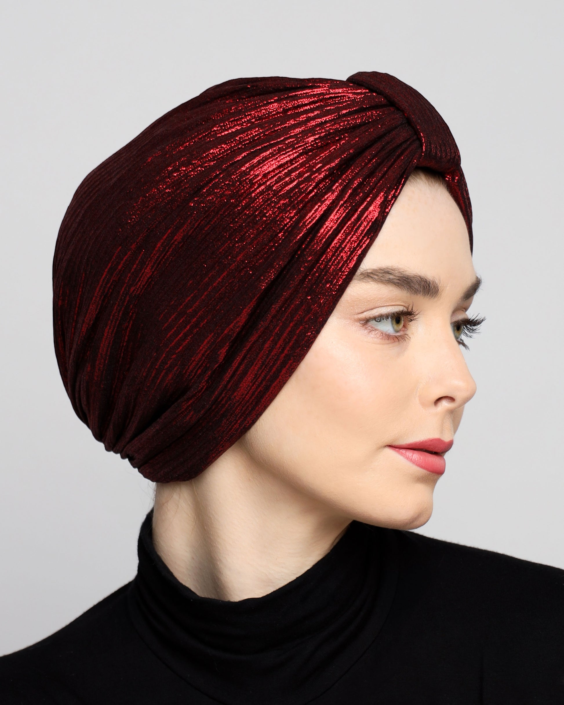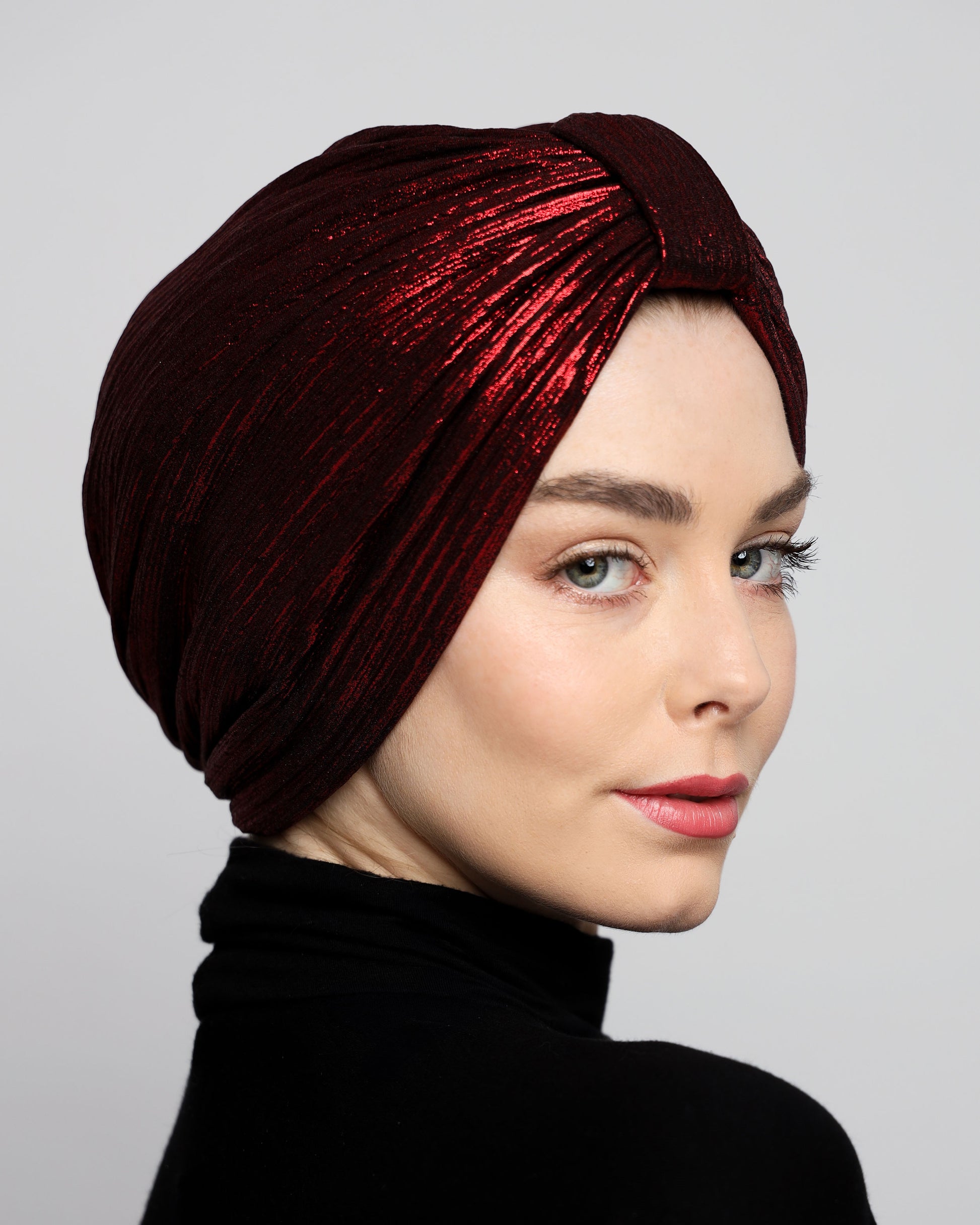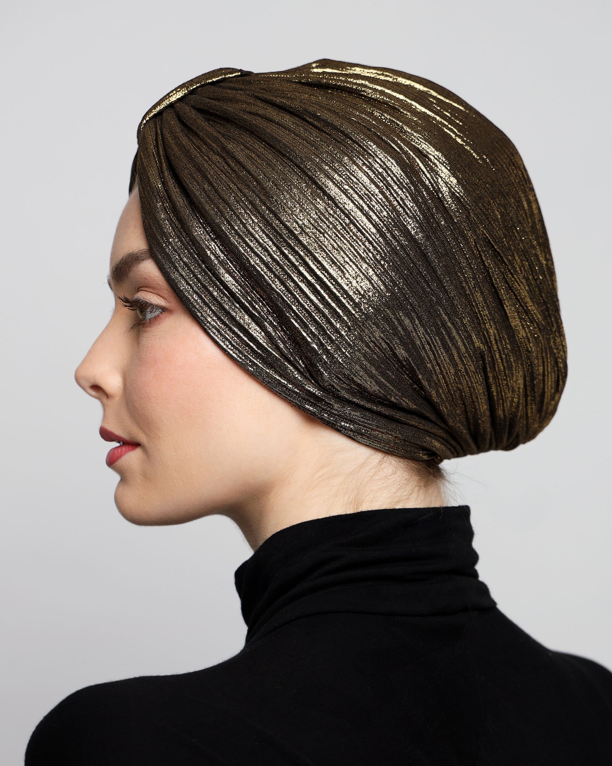 Indulge in luxury and elevate your style with our Metallic Plisse Turban. This elegant headpiece is crafted from high-quality metallic plisse fabric, adding a touch of shimmer to your look. Wear it as a statement piece or pair it with your favorite outfit for a sophisticated touch.