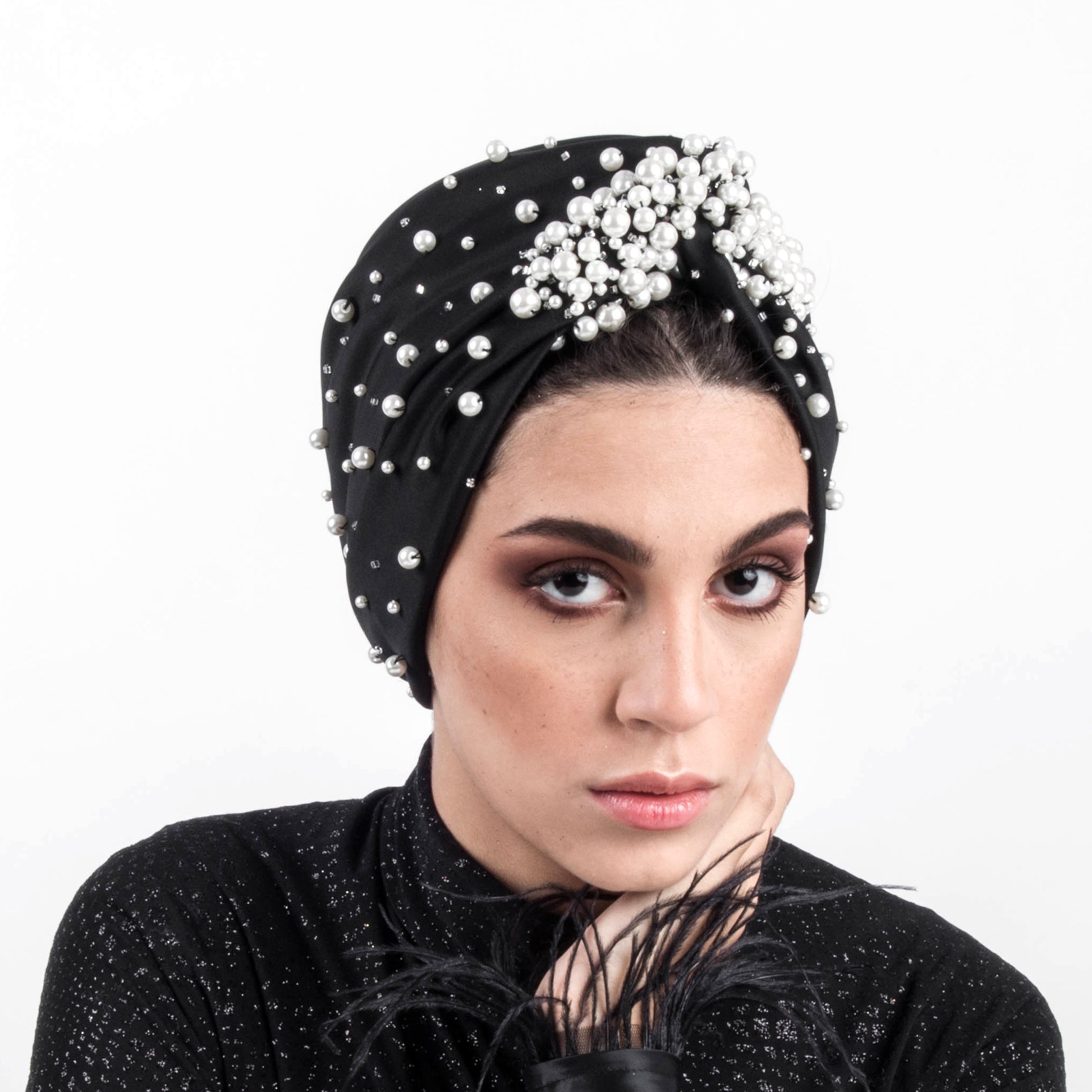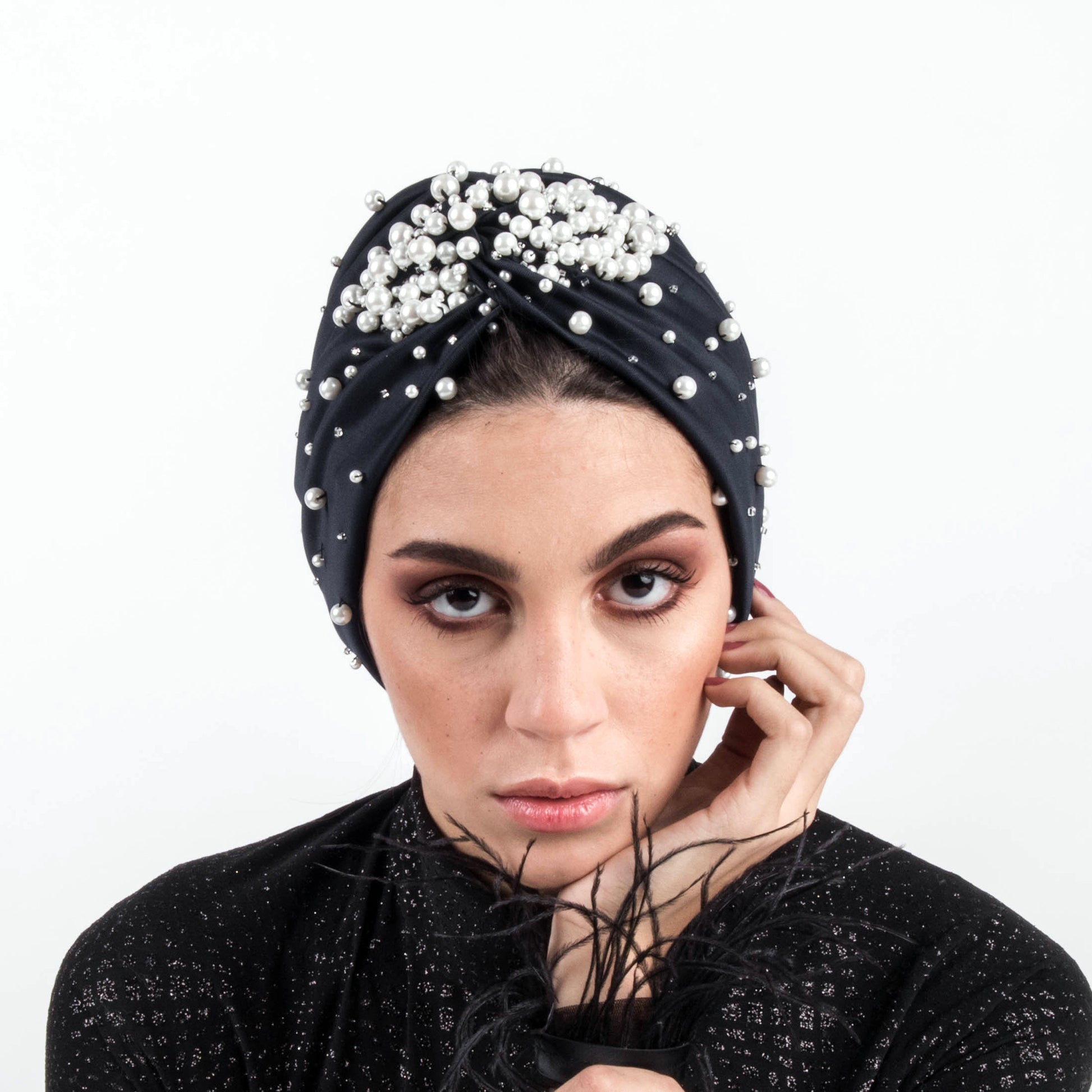 Adorn your head in sophistication with our Pearls Turban. Made from luxurious scuba fabric, this one-of-a-kind turban is exquisitely embroidered with pearls. Its versatile design ensures a perfect fit for all, adding a touch of elegance to any outfit. Elevate your style with this pearl-adorned treasure.