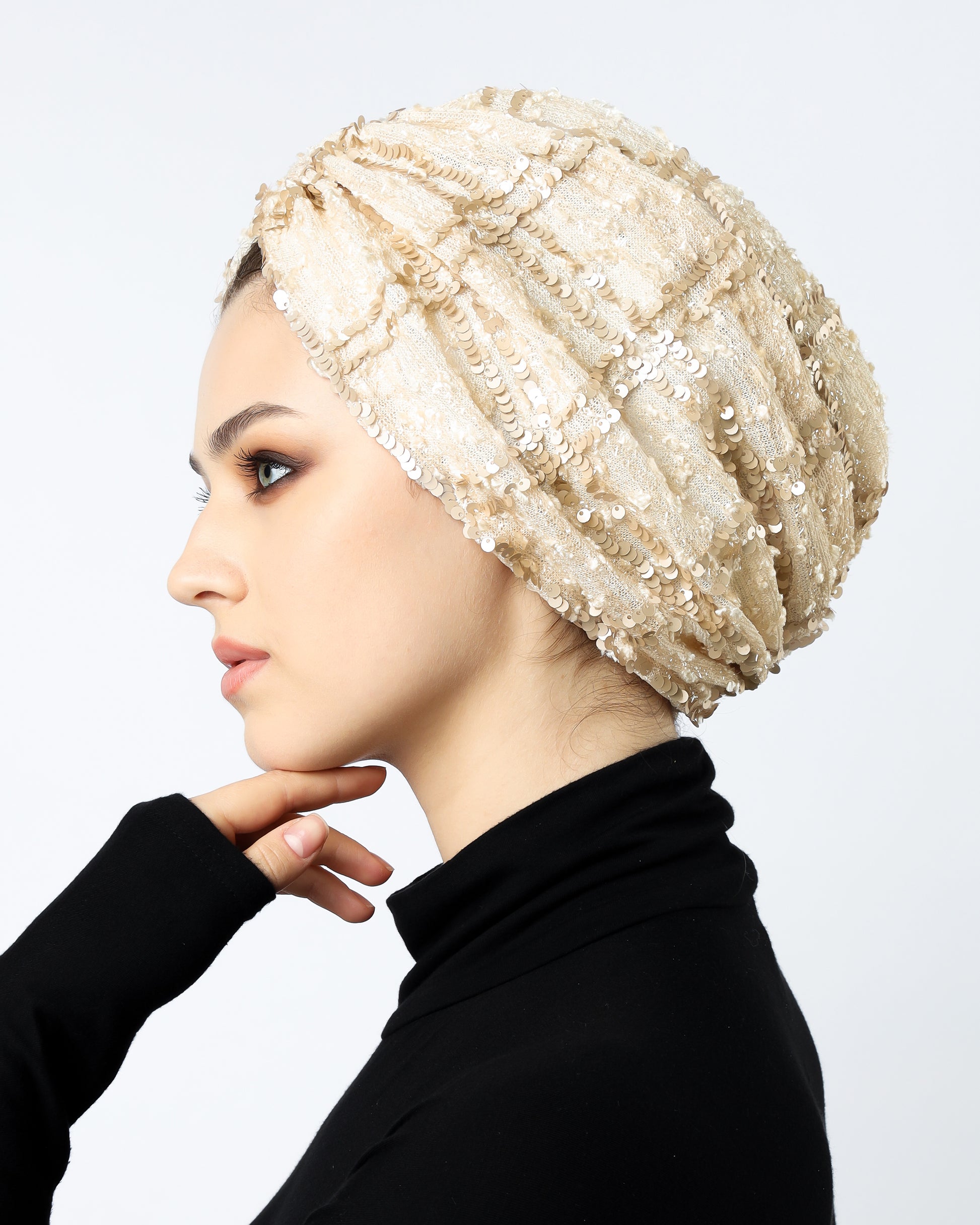 Step out in style with our Sequin Turban, the perfect addition to your wardrobe. This luxurious turban is lined with soft cotton, providing a comfortable fit for all head sizes. Elevate your look and add a touch of sophistication with this dazzling accessory.