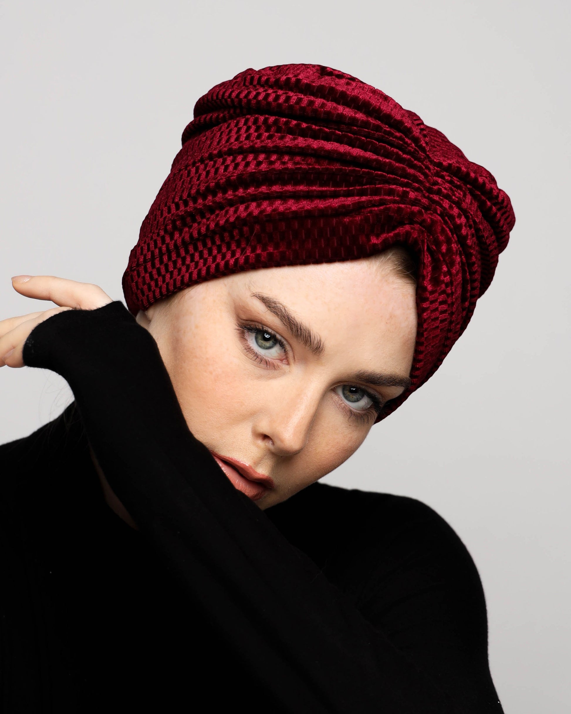 This Velvet Gathering Turban is the perfect combination of comfort and style. Lined with pure cotton, it provides a cozy fit while the luxurious velvet adds a touch of elegance. Expertly crafted for a perfect fit, this turban is a must-have accessory for any occasion.
